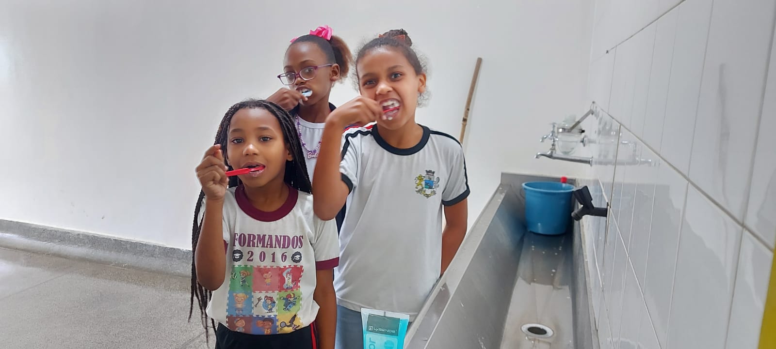 As meninas também mostraram que estão afiadas na hora de cuidar da higiene bucal nos educandários municipais