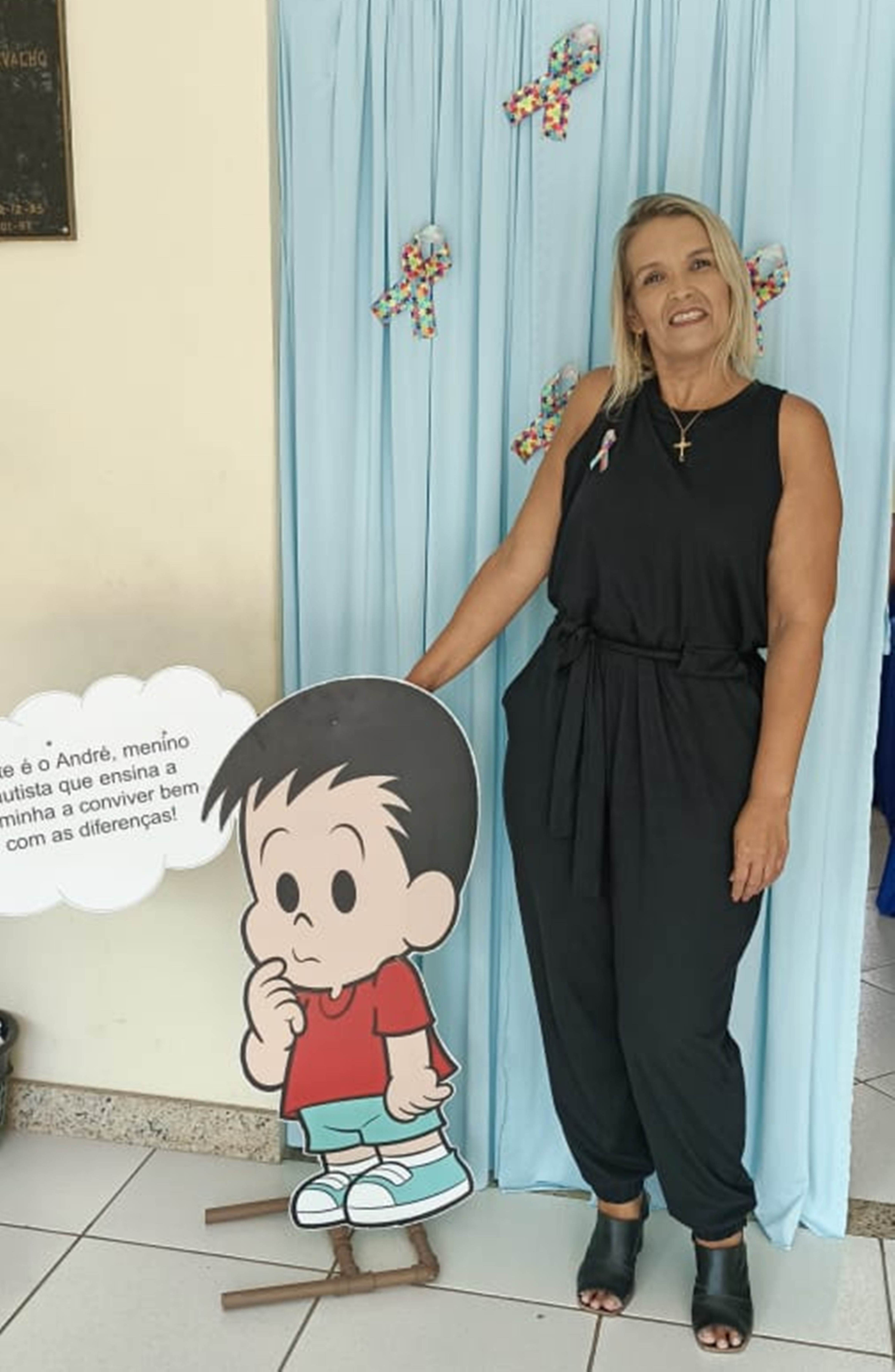 Luciana Boaretto posou para a foto ao lado de um personagem escolhido para aumentar a disseminação de informações