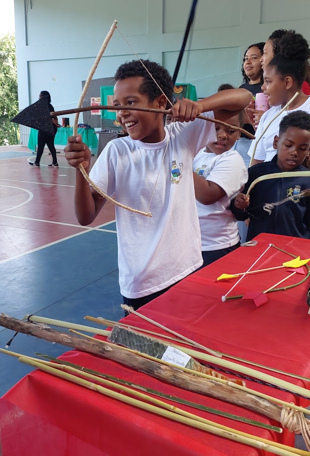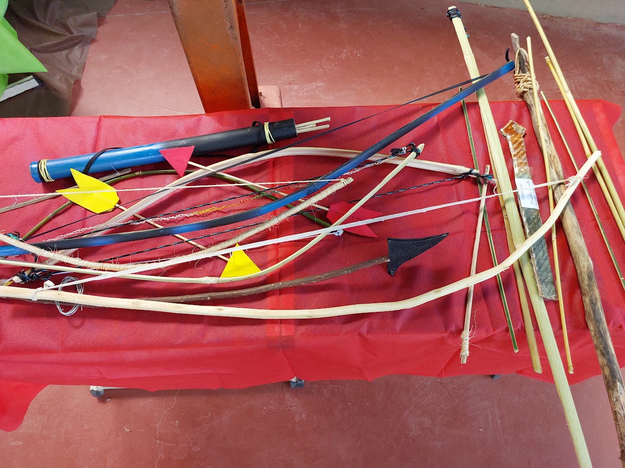 Réplicas de artefatos dos povos originários, como arcos e flechas, propiciaram aos estudantes mergulhar na história e no repertório cultural indígena durante o evento