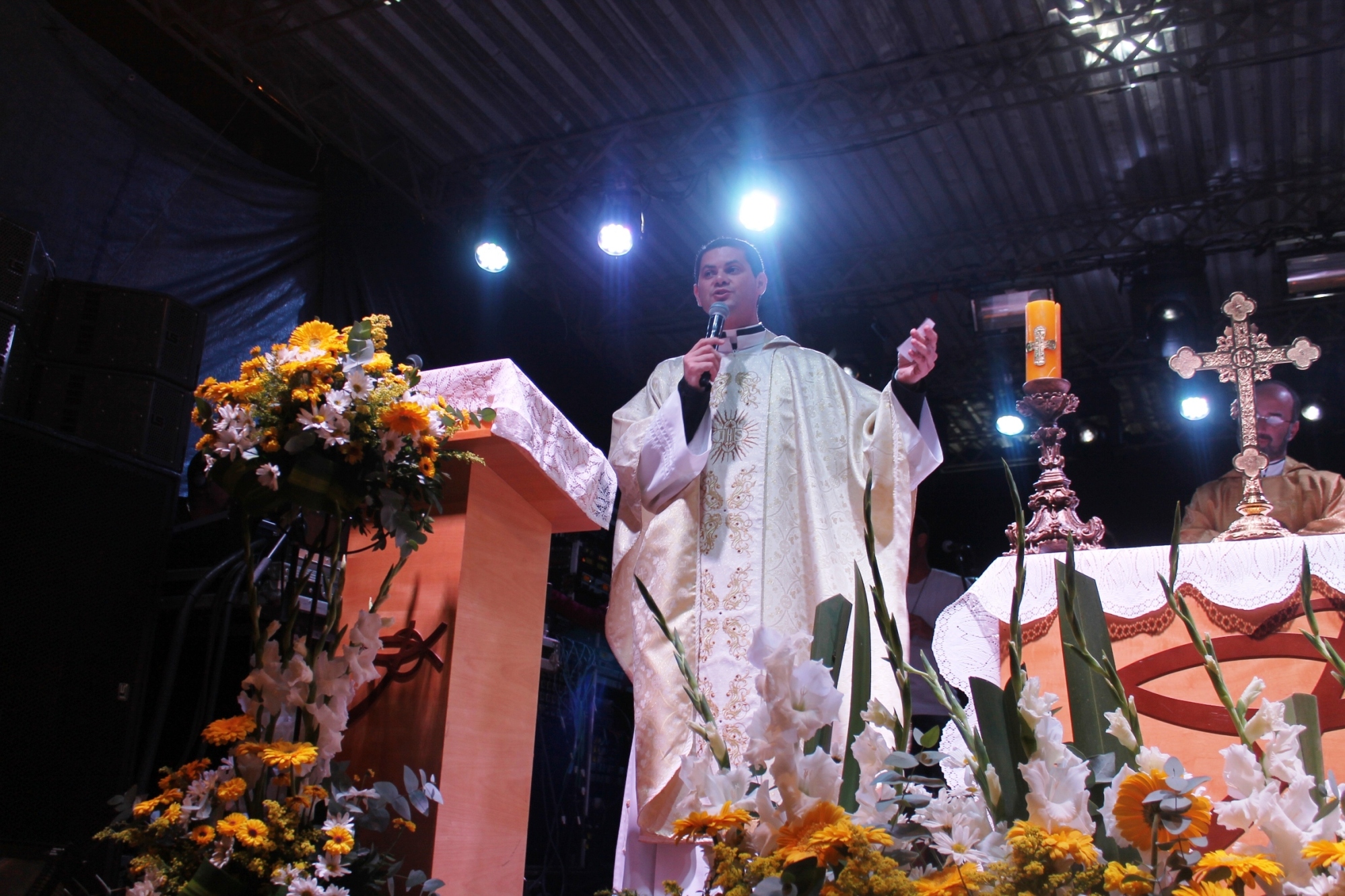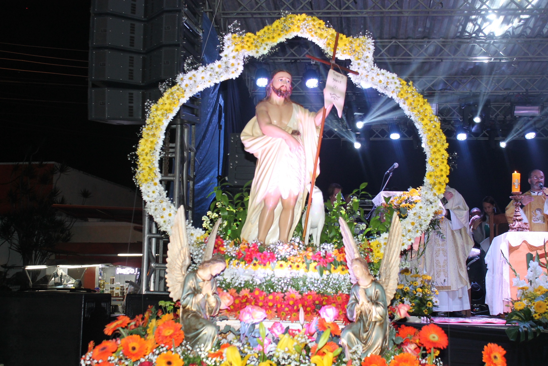 Após a celebração da missa campal, que se deu no palco principal, o local foi devidamente preparado para abrigar o show de um dos mais respeitados e conceituados artistas evangelizadores do segmento Católico, o cantor Eugênio Jorge, que com mensagens de esperança, otimismo e paz interior conclamou a multidão a orar e elevar os pensamentos e pedidos aos céus. “Ficamos muito felizes com a presença desse grande ícone da canção cristã. Foi uma benção para nossa comunidade e para toda região”, disse o Padre Wanderson, titular da Paróquia de Sã João Batista.
