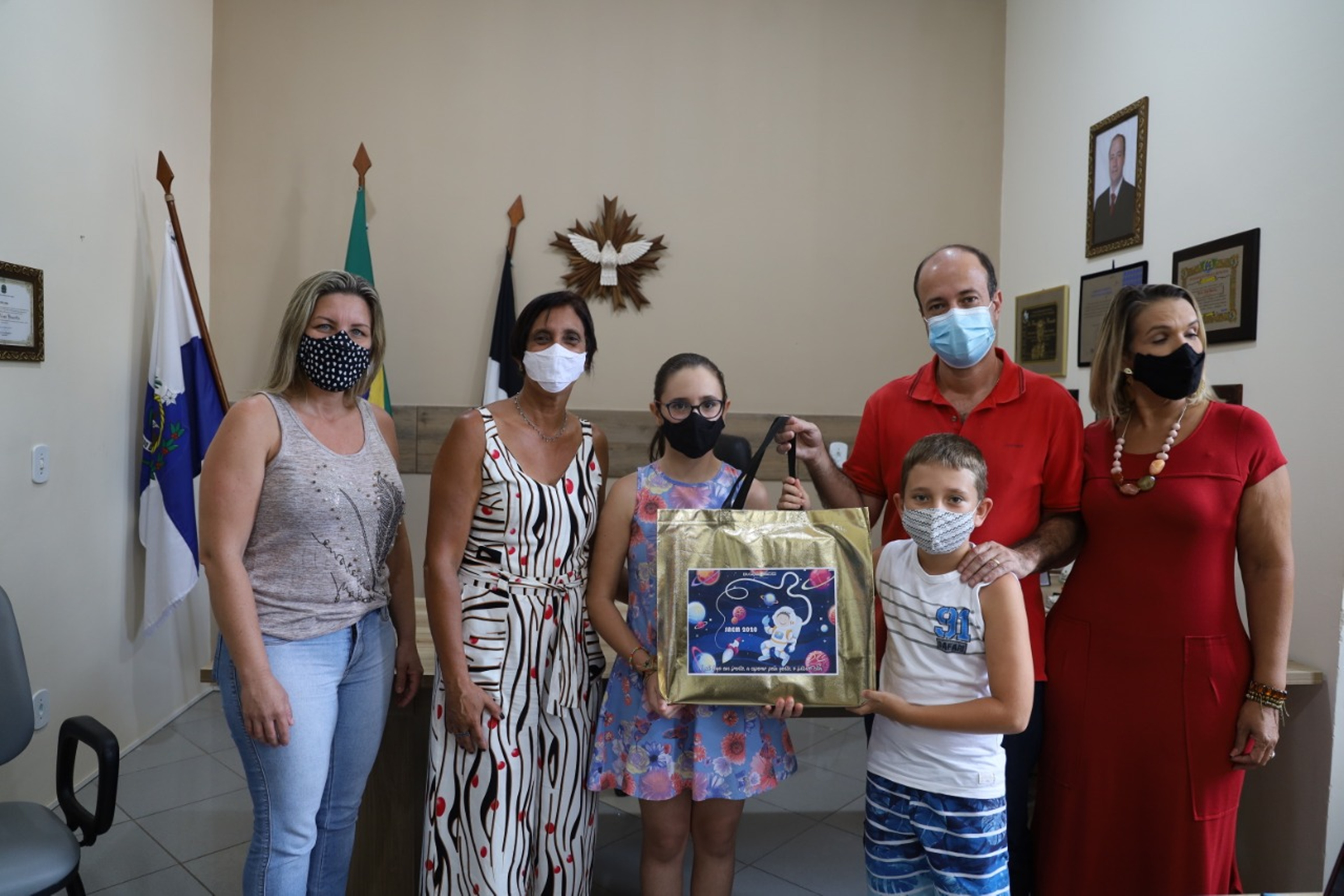 Cecília Esperante Figueira com o prefeito, a vice, a secretária e a professora