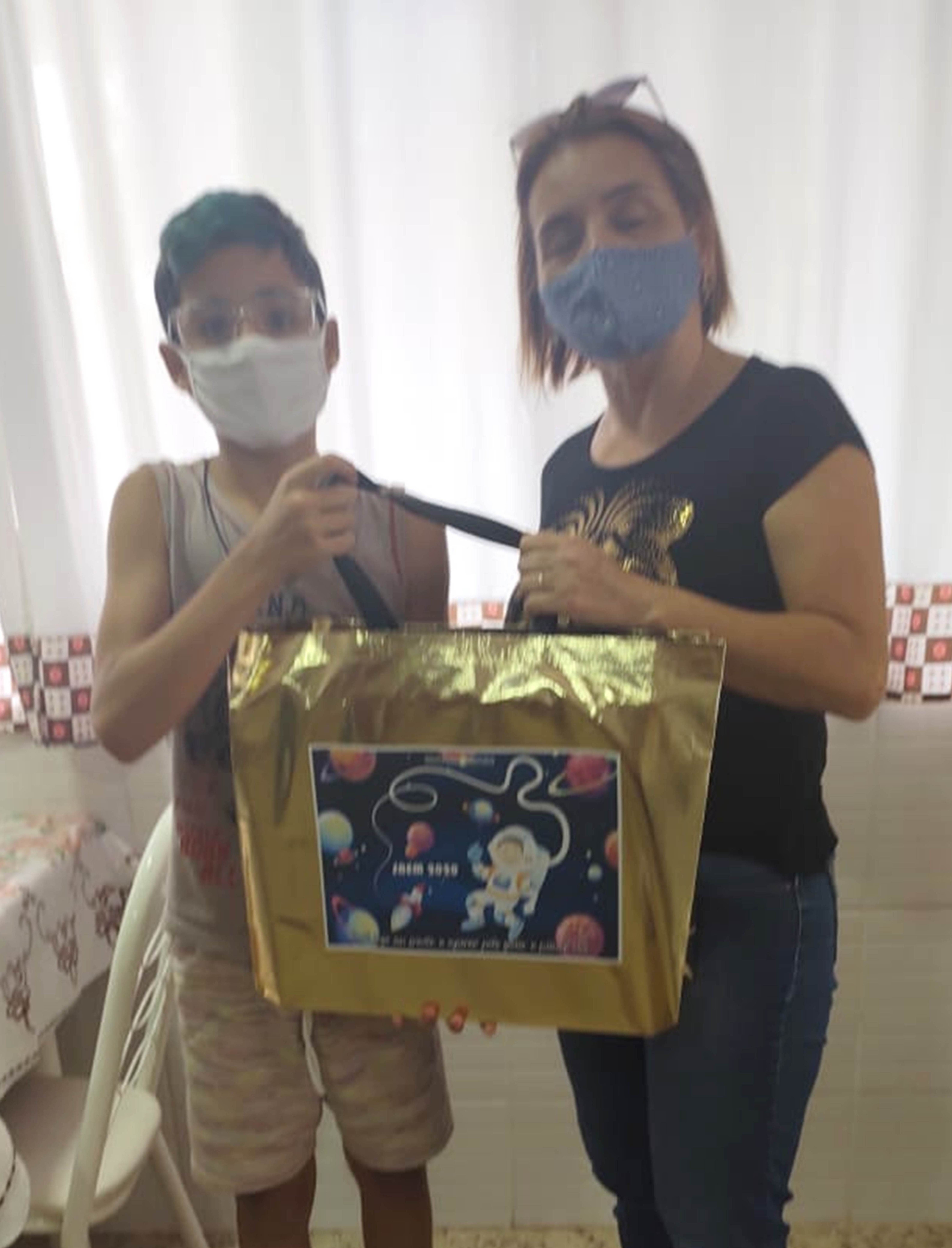 Rhuan Ferreira Barros no momento em que era presenteado com o notebook