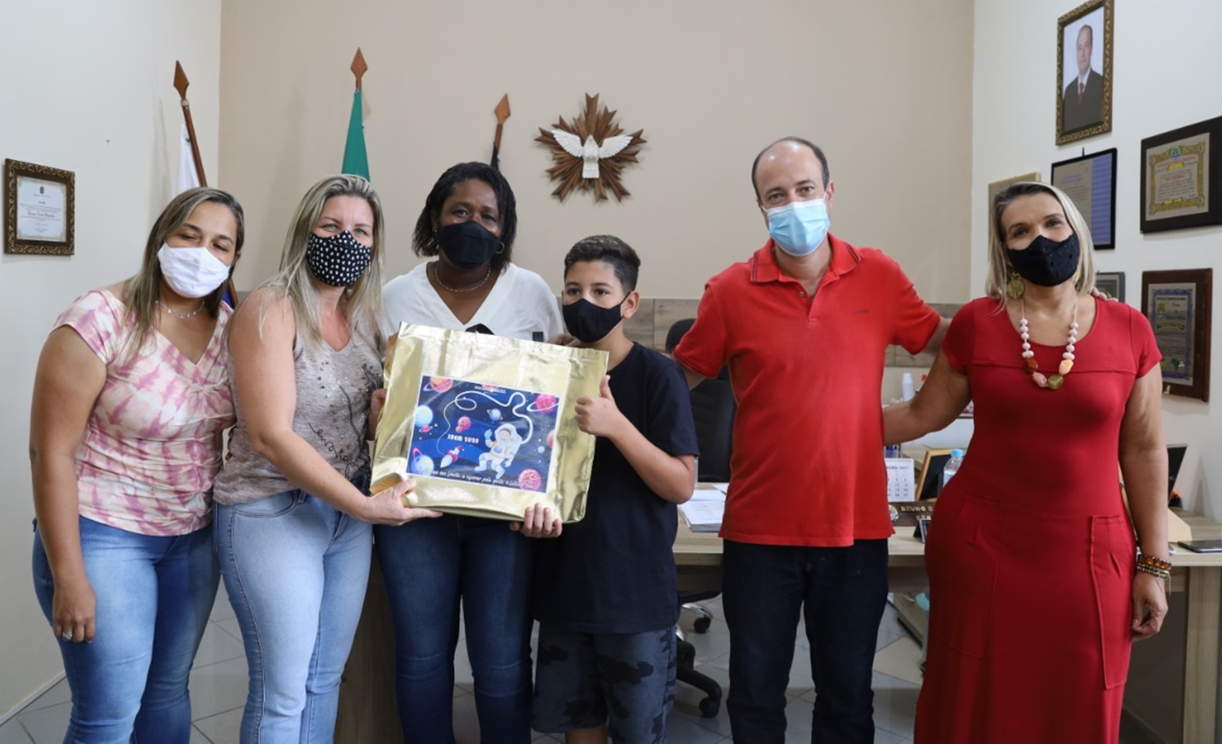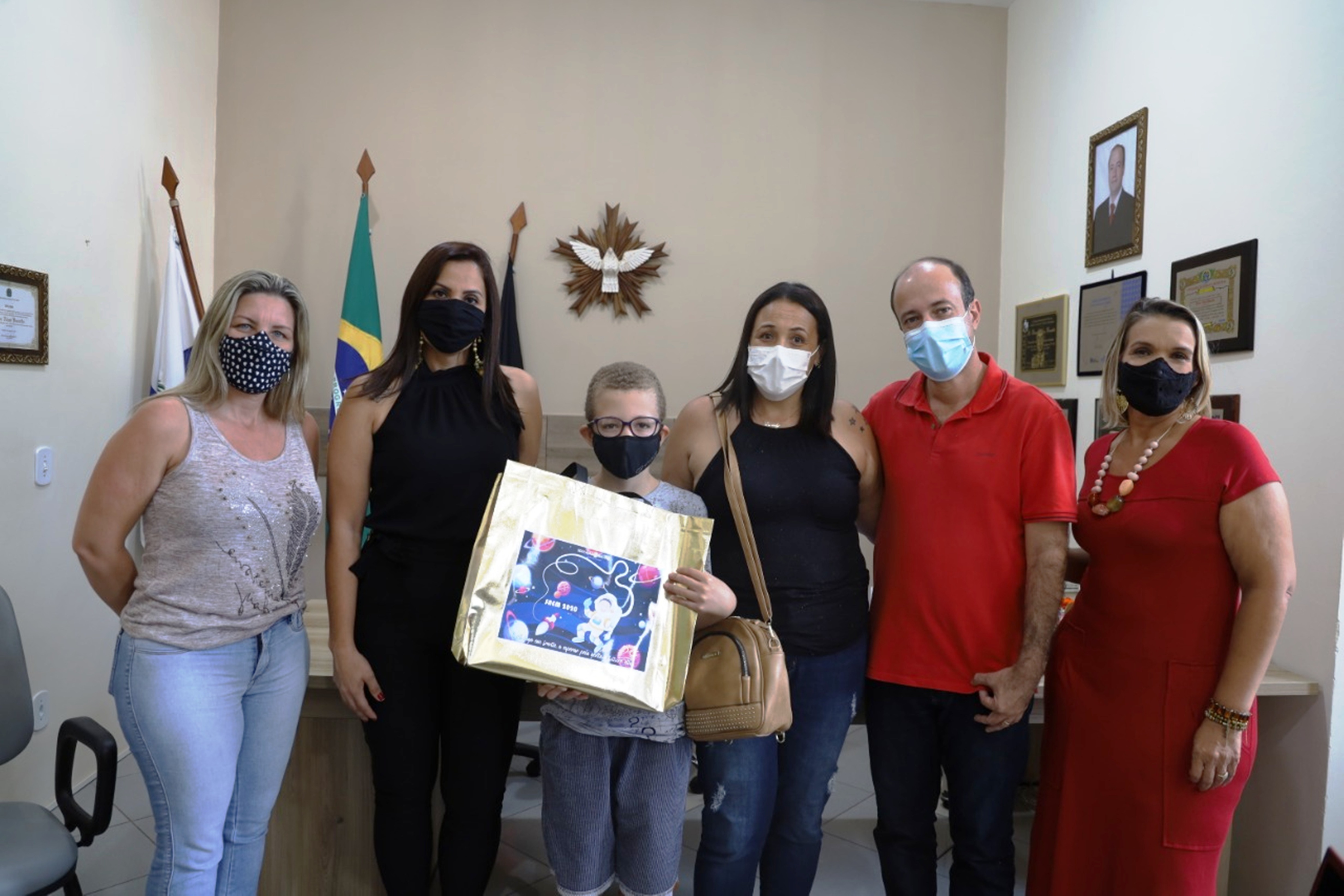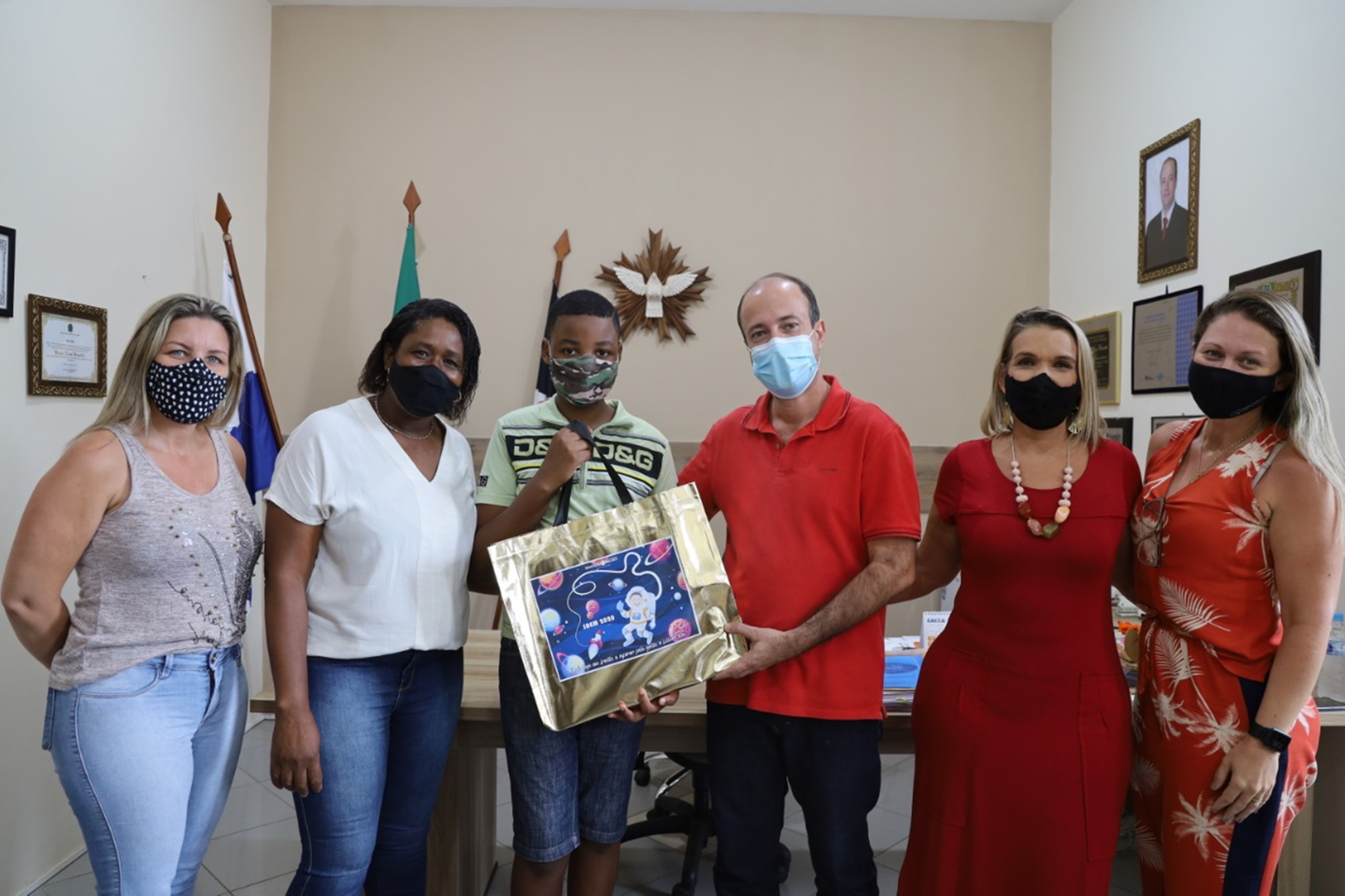 Jovem aluno João Lukas Miranda Malaquias recebe o prêmio com a família