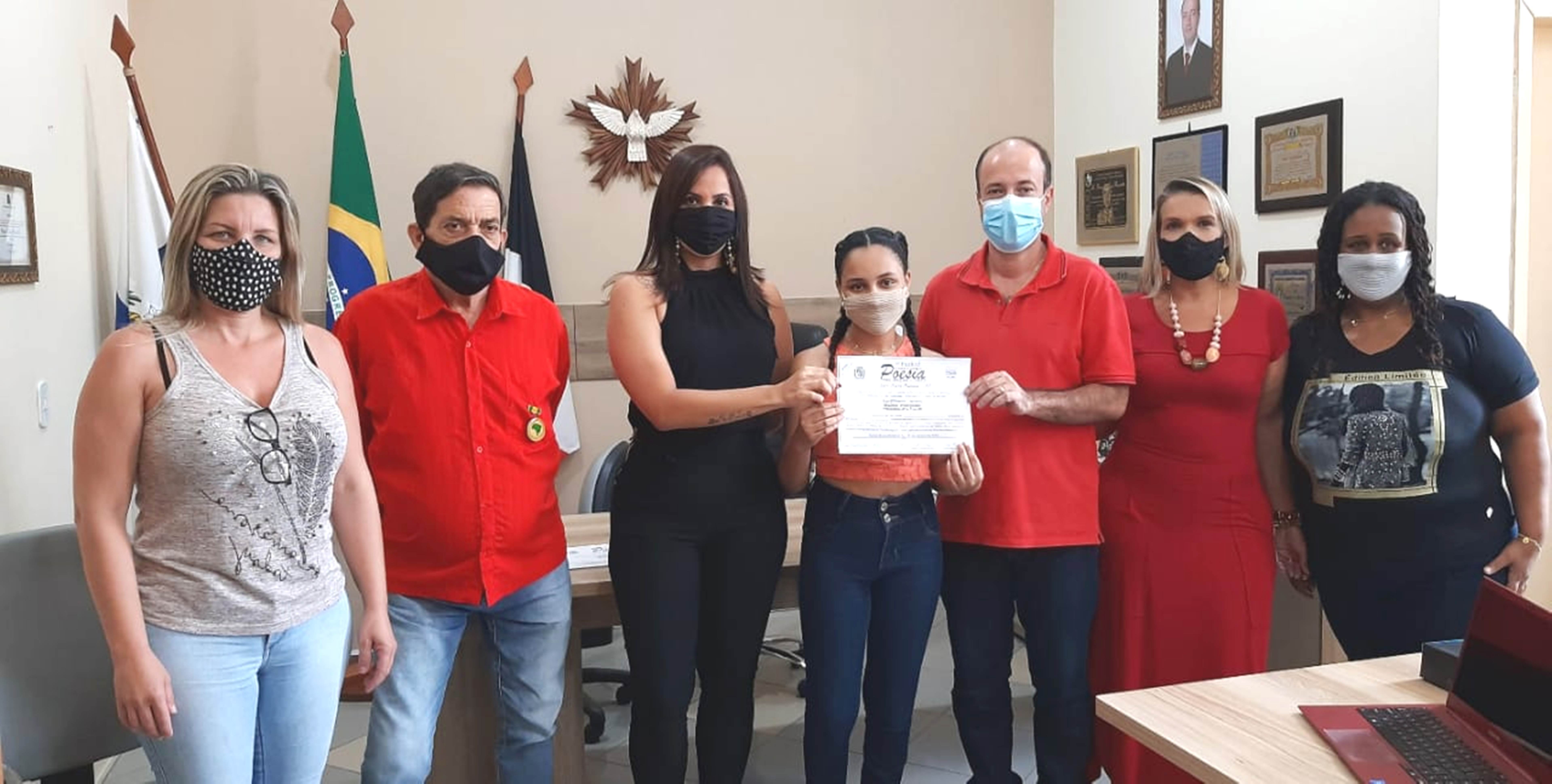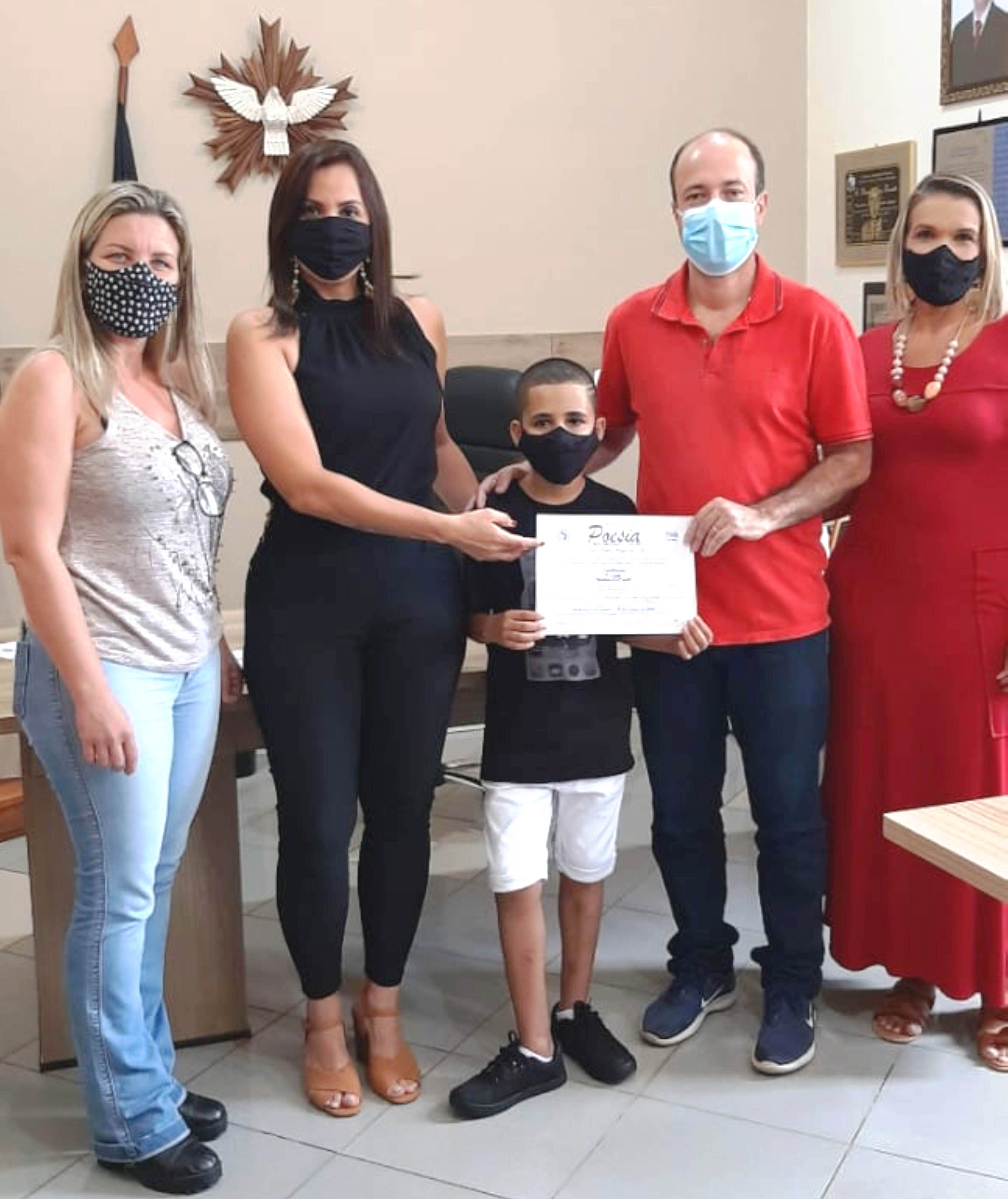 E a alegria não parou por aí. O momento ainda marcou a entrega do Certificado do Festival Intermunicipal de Poesias a Andrei Toppini e Geovana Fernandes. Os jovens alunos receberam a honraria de Carlos Henrique Muniz, idealizador do festival, pela conquista de Melhor Poesia e Melhor Intérprete, respectivamente.