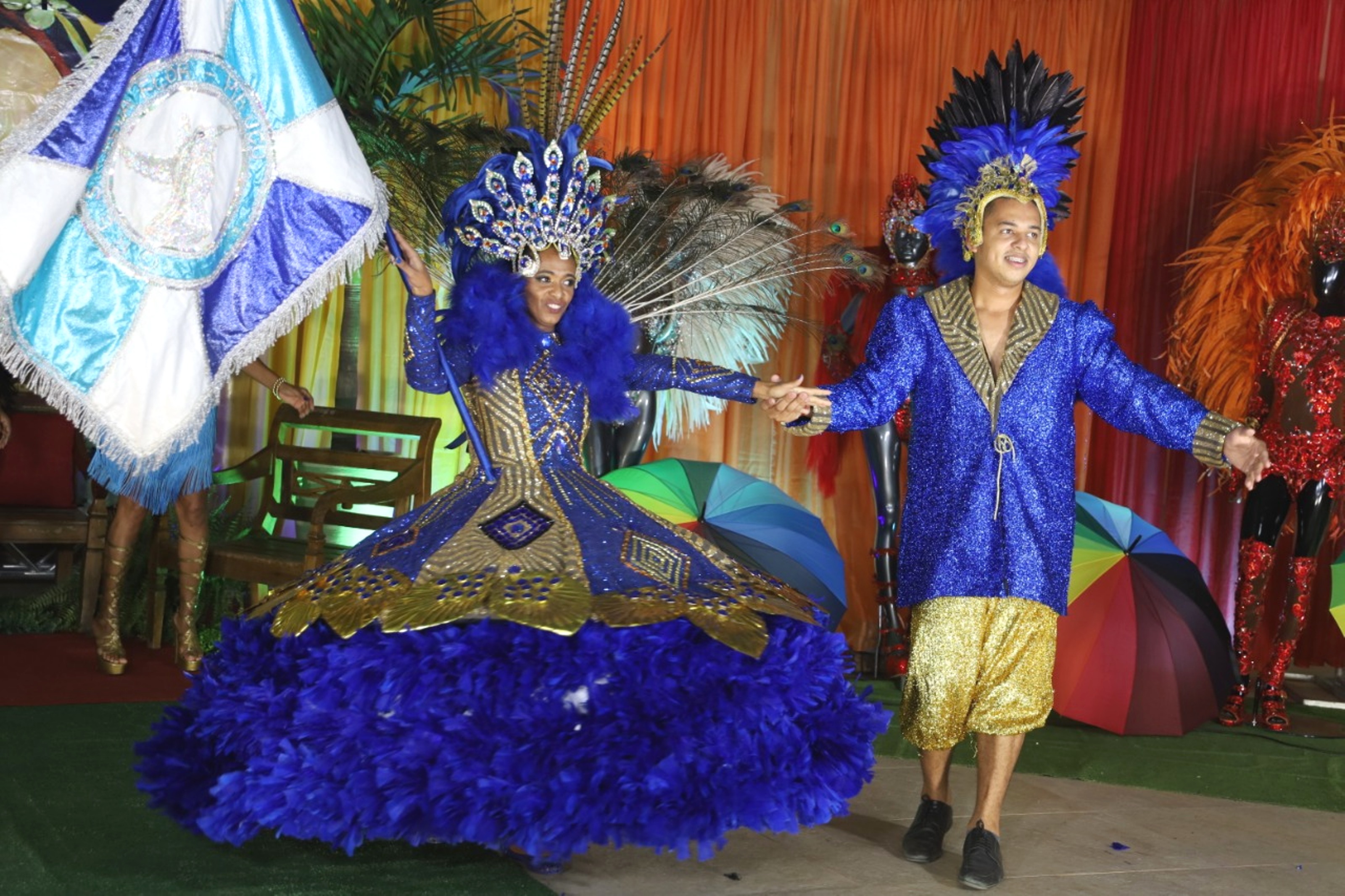 Porta-Bandeira e Mestre-Sala exibem o pavilhão da Escola Império do Samba