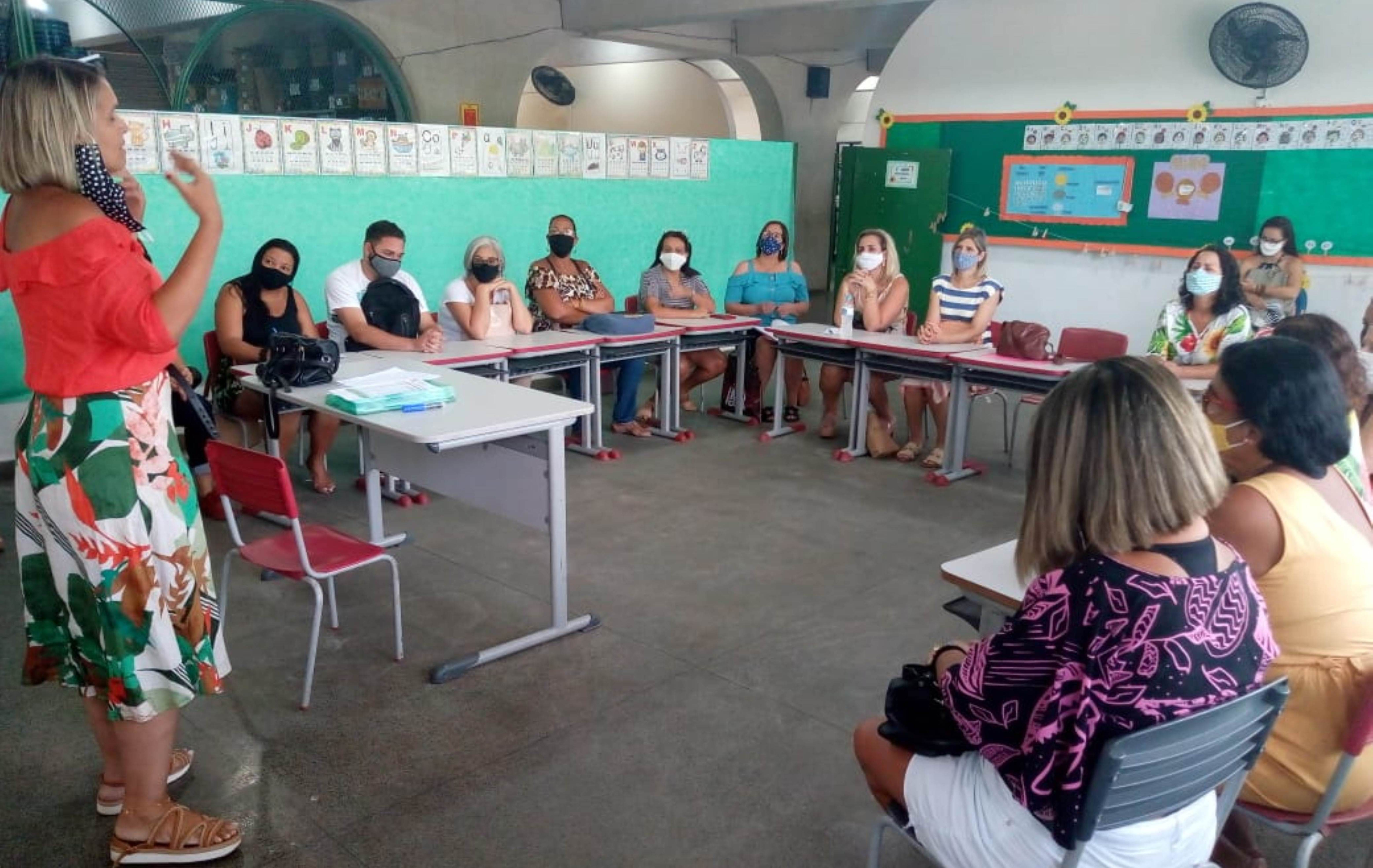 Secretária Luciana Boaretto conversa com as professoras durante o processo