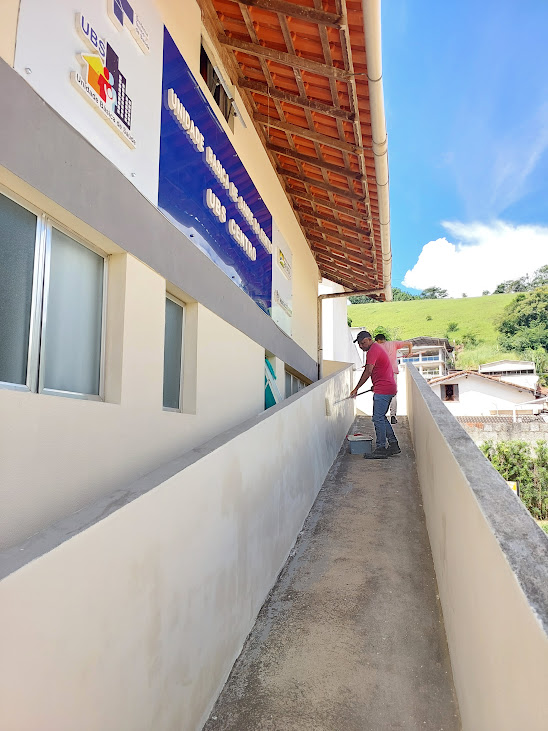 Não é apenas pintura, mas recuperação da estrutura das Unidades de Saúde retirando o reboco antigo, tratando infiltrações e garantindo que a pintura dure bastante