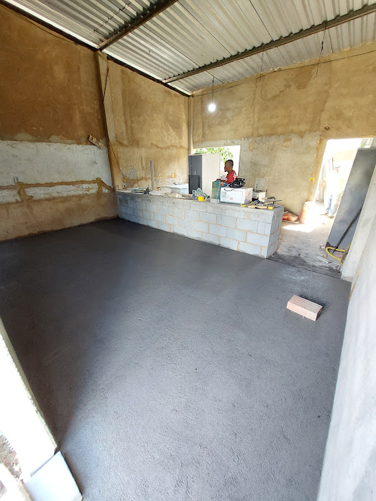 O piso recém-concretado na cozinha do Pronto Atendimento é fundamental, pois vai garantir um ambiente totalmente adequado às normas de higiene segurança