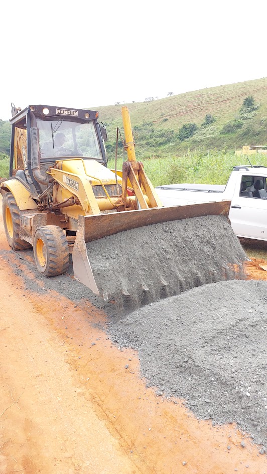 Com auxílio da máquina retroescavadeira, os funcionários da Secretaria de Obras e Serviços de Macuco fazem os reparos