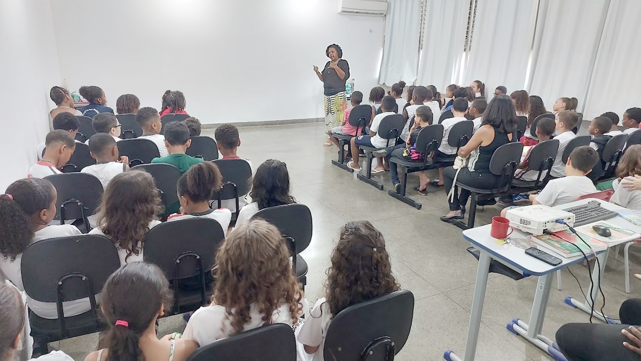 Autoridades, alunos, professoras e orientadoras pedagógicas assistiram à palestra ministrada pela bióloga Leila Brito