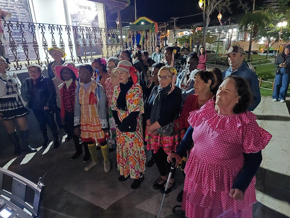 Antes mesmo de apresentar a quadrilha, integrantes da Melhor Idade cantaram e exibiram seus talentos comandados pelo maestro Marcelo Juliano