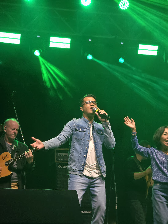 Fé e devoção ficaram evidentes na expressão do ótimo vocalista da banda católica Vida Reluz