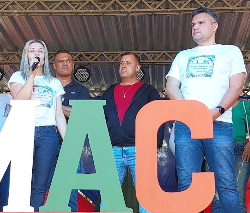 Prefeita Michelle Bianchini fez a abertura oficial do evento após discursar ao lado do marido e secretário João Vitor Pontes