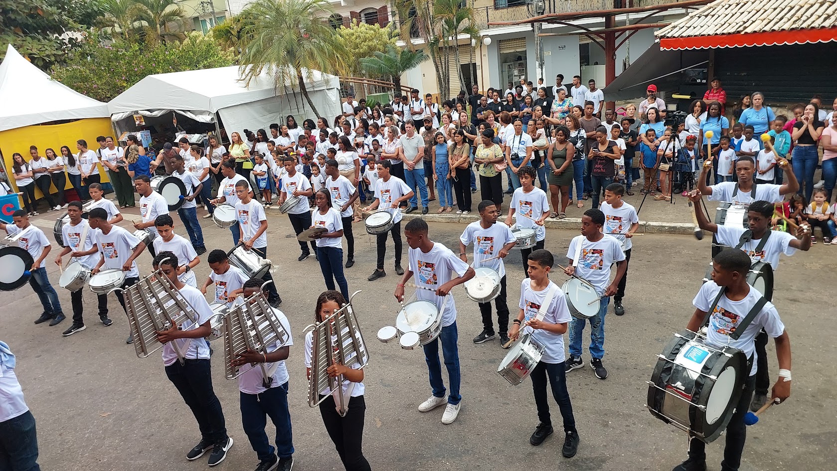 Ritmistas da Banda Municipal Juliano Lopes de Souza deram um show sob a regência do popular Zé da Banda
