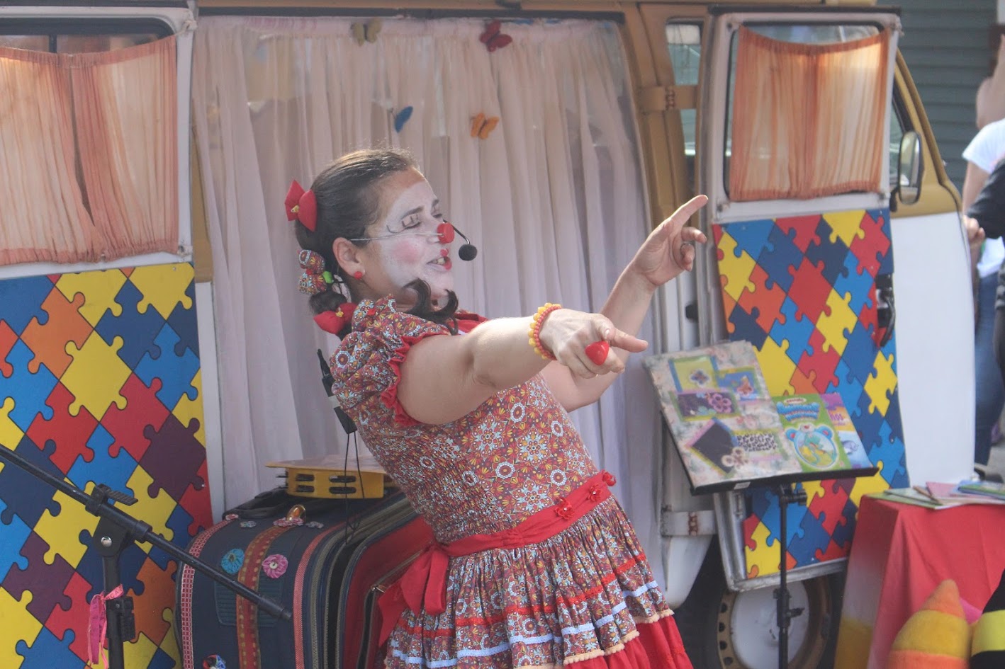 De cima de sua Kombi, Belinha comandou o agito e a garotada se esbaldou de tanta felicidade