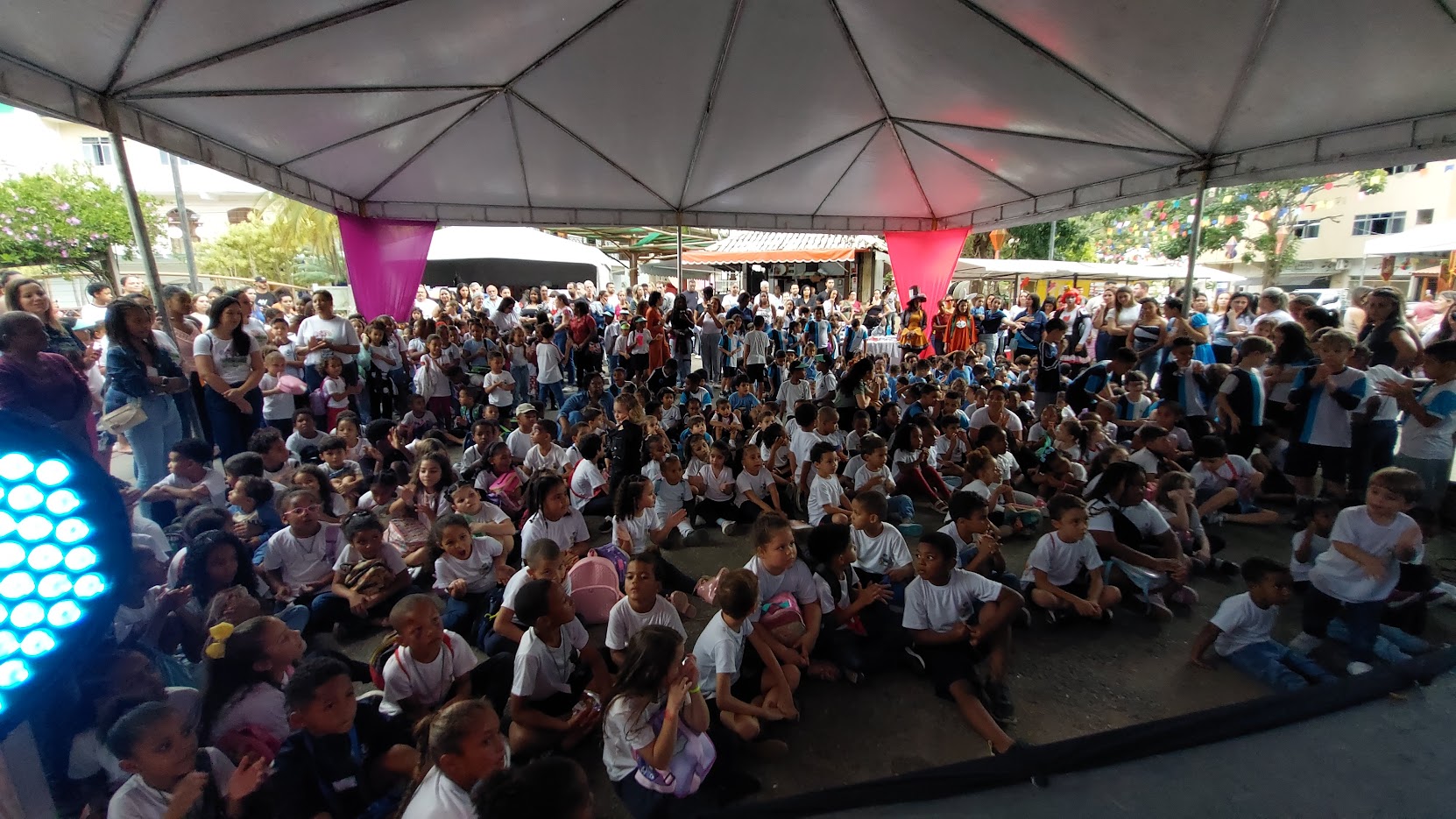 Sentadinhos, atentos e interagindo com as apresentações, os pequenos estudantes foram a grande atração da FLIMAC na quinta-feira