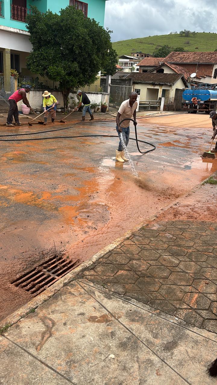 O empenho dos servidores esteve evidenciado em muitas ruas do município, incluindo Nava Macuco, onde a lama precisou ser retirada para desobstruir as ruas