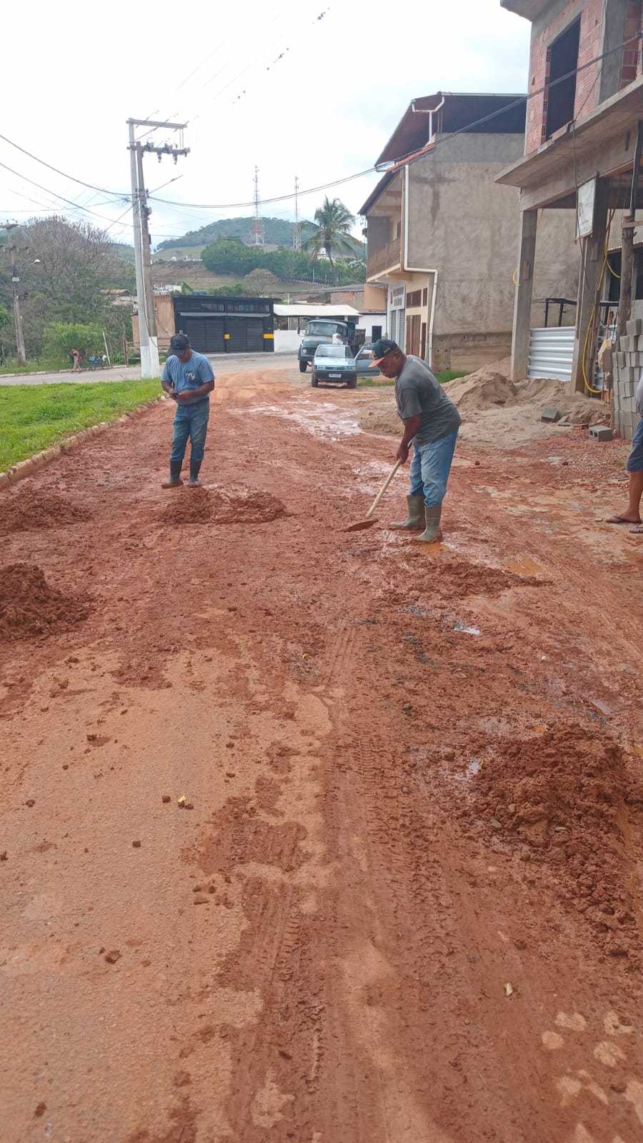 As águas que desceram das partes altas dos bairros durante a chuva geraram muita lama nas ruas, aumentando o trabalho para a ótima equipe de obras da cidade