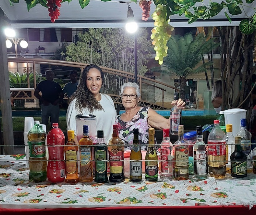 Micaelle Mattos com mais uma das integrantes da feirinha durante o show do último sábado no centro de Macuco