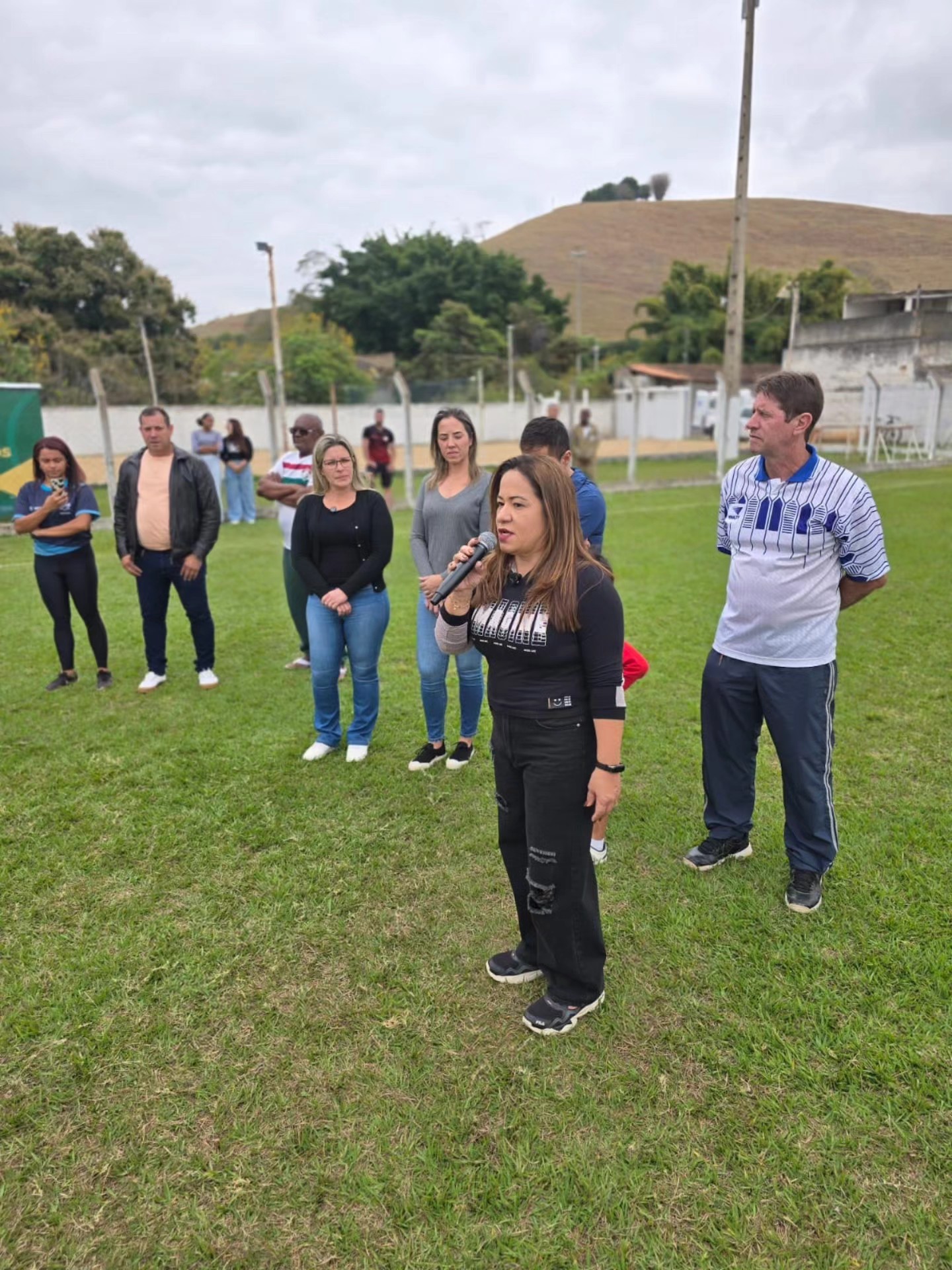 Bem à vontade por estar dando vazão a uma tradição esportiva macuquense, a secretária de Esporte e Lazer, Helen Ferreira discursa na abertura dos jogos