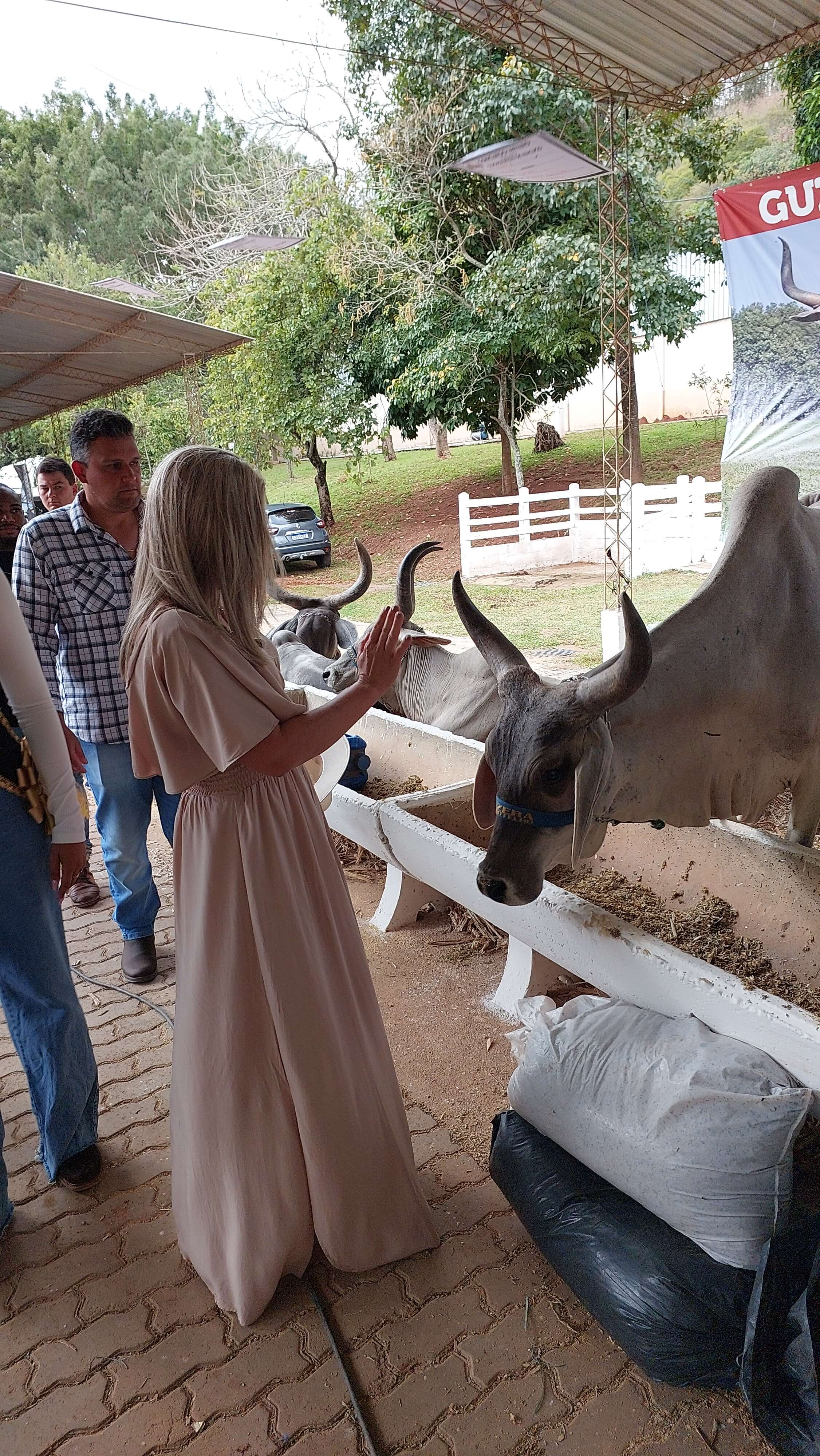 Prefeita Michelle Bianchini se divertiu com um exemplar da Raça Nelore logo depois da Cerimônia de Abertura