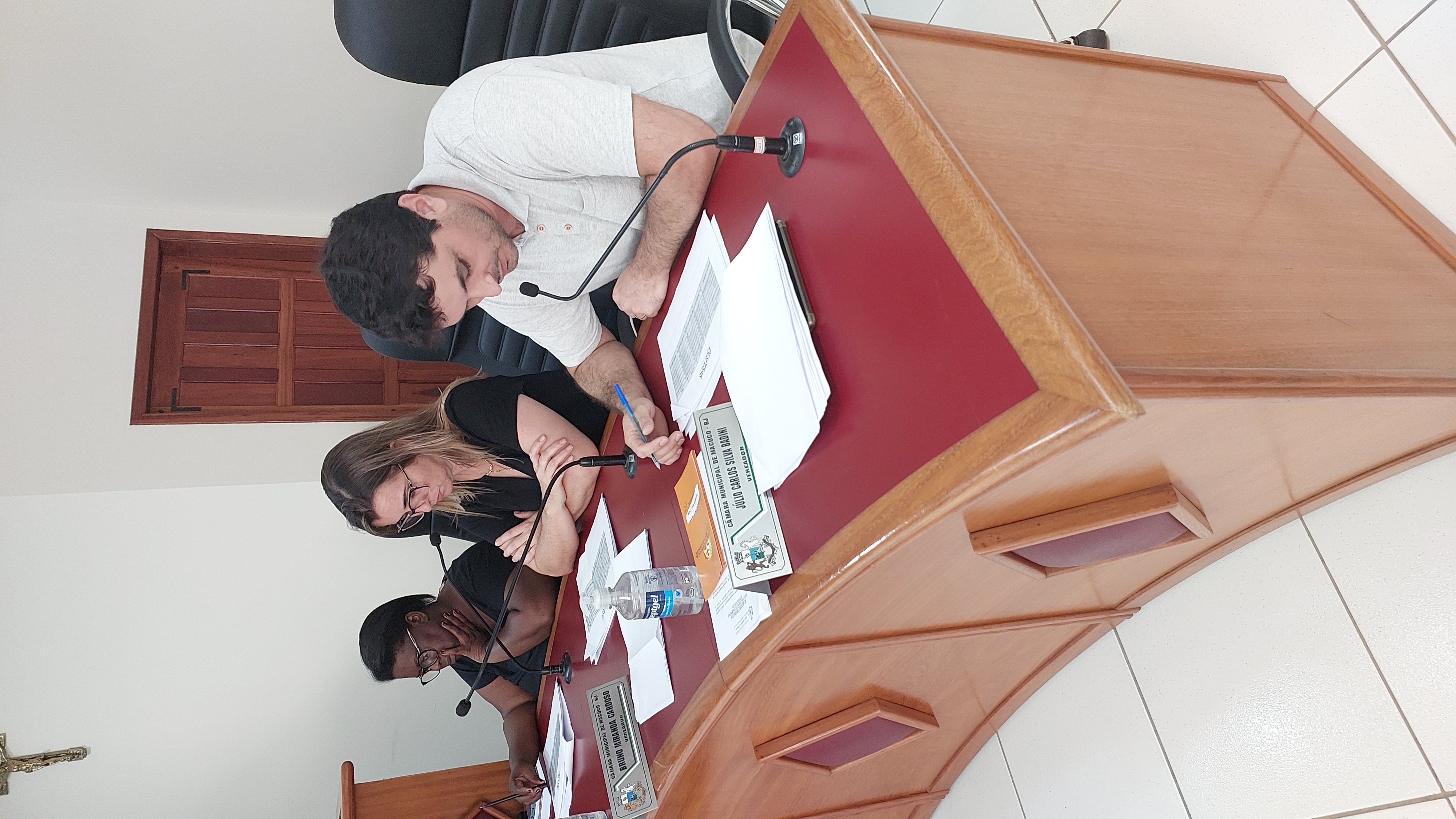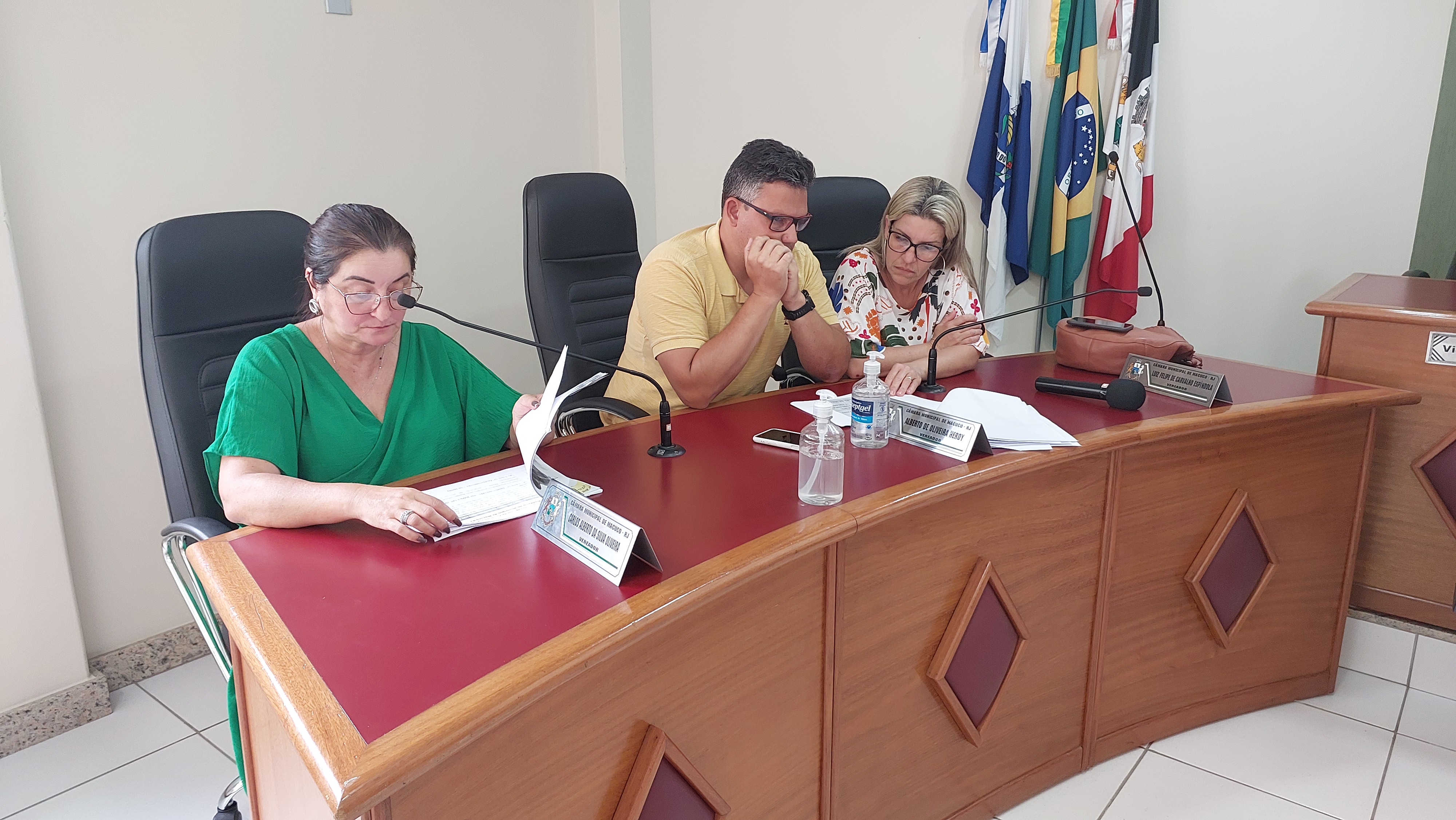 Secretárias Sandra Laurindo (Fazenda) e Débora Torres (Controle Interno) durante a explanação dos relatórios pelo contador Rodrigo Vila Nova