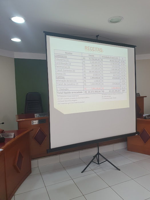 Os relatórios contendo os números da Prestação de Contas do Segundo Quadrimestre foram exibidos num telão durante a Audiência Pública