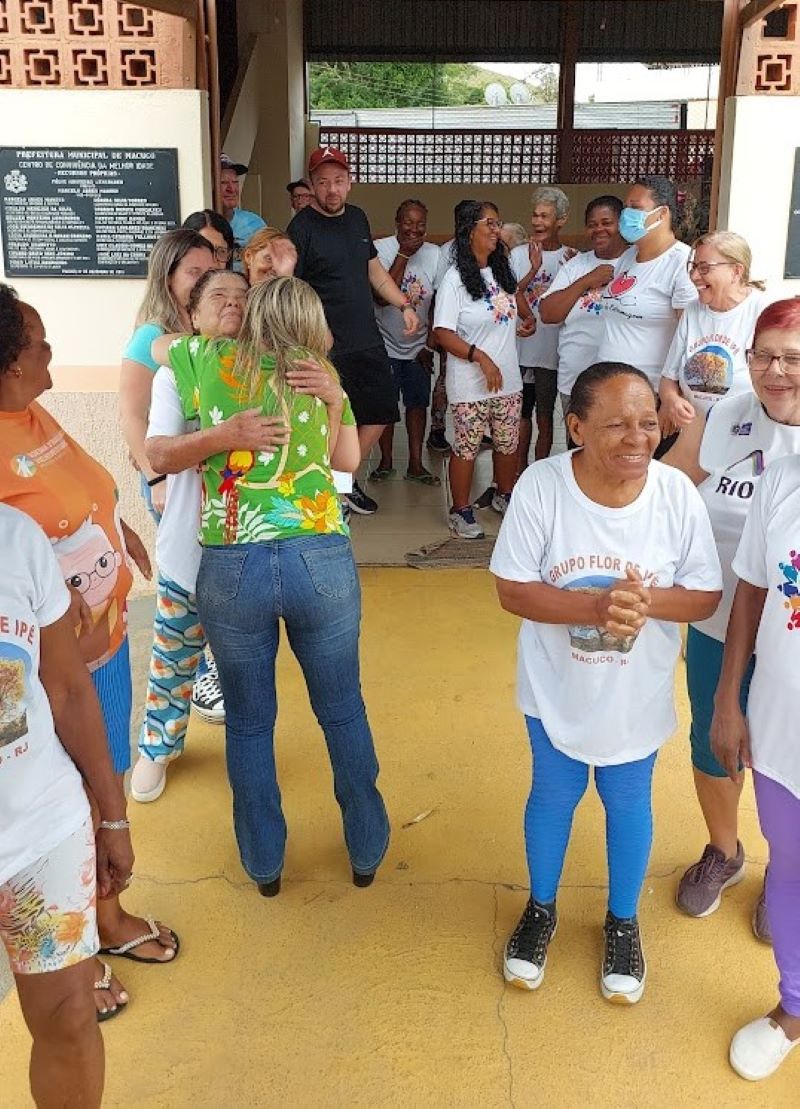 Num dos locais onde passou, na sede do Grupo Flor de Ipê, a prefeita Michelle Bianchini foi recebida com festa pelos frequentadores