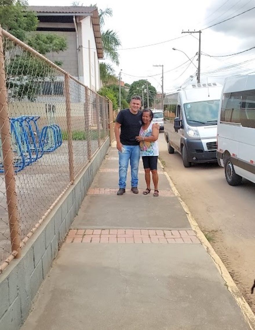 O carinho e receptividade da moradora com o secretário de Governo e Gestão de Macuco, João Vitor Pontes, durante o tour dos dois veículos