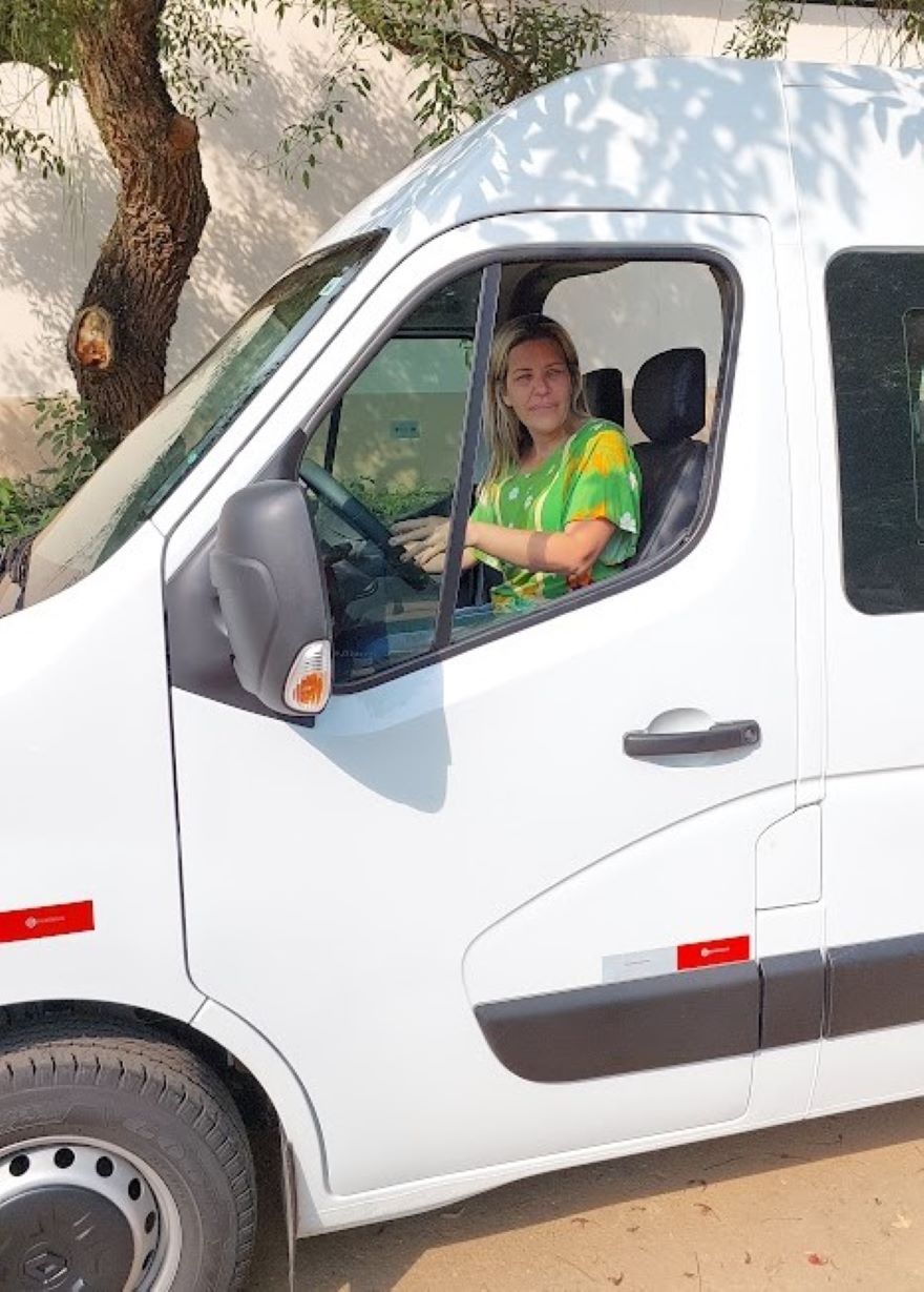 Prefeita Michelle Bianchini fez questão de se sentar ao volante e conferir de perto uma das vans adquiridas pela Gestão Municipal