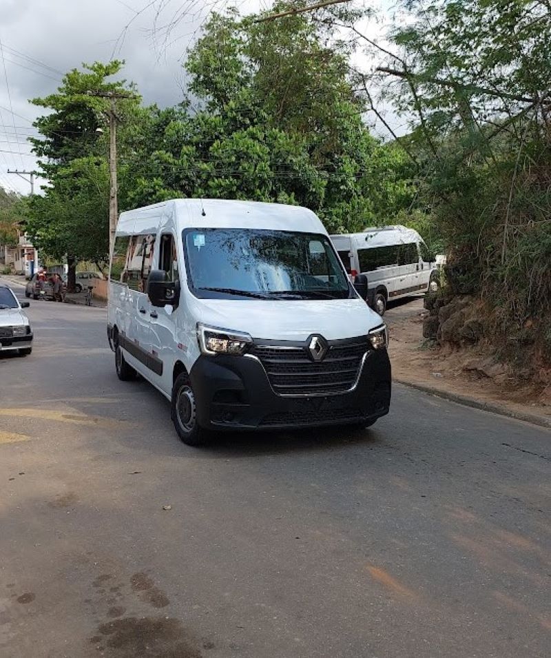 Com capacidade para comportar 16 passageiros cada uma, as duas vans estão expostas em frente à sede da Prefeitura de Macuco