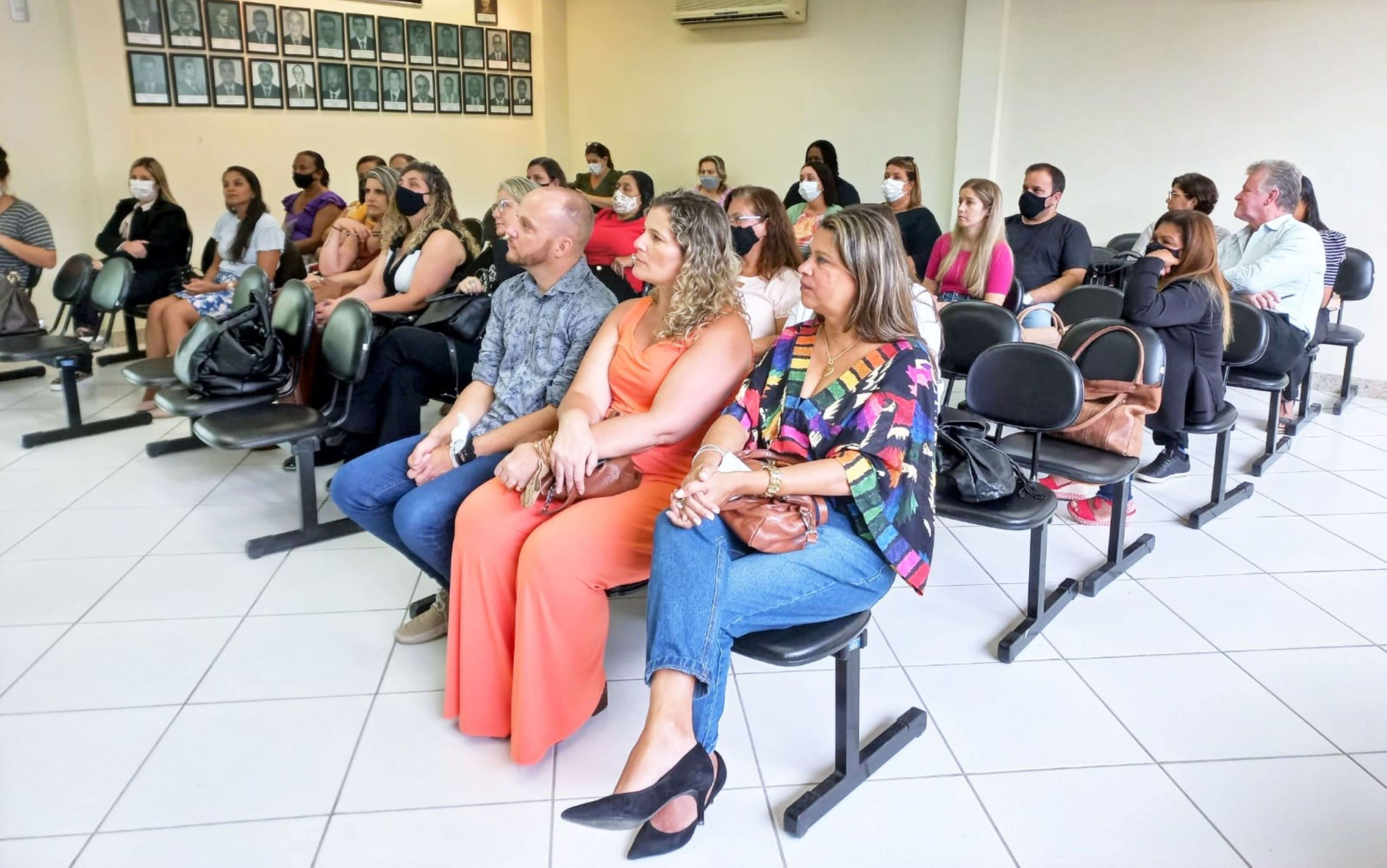 Secretários municipais e coordenadores do JEPP das nove cidades acompanhando as palestras na Câmara Municipal