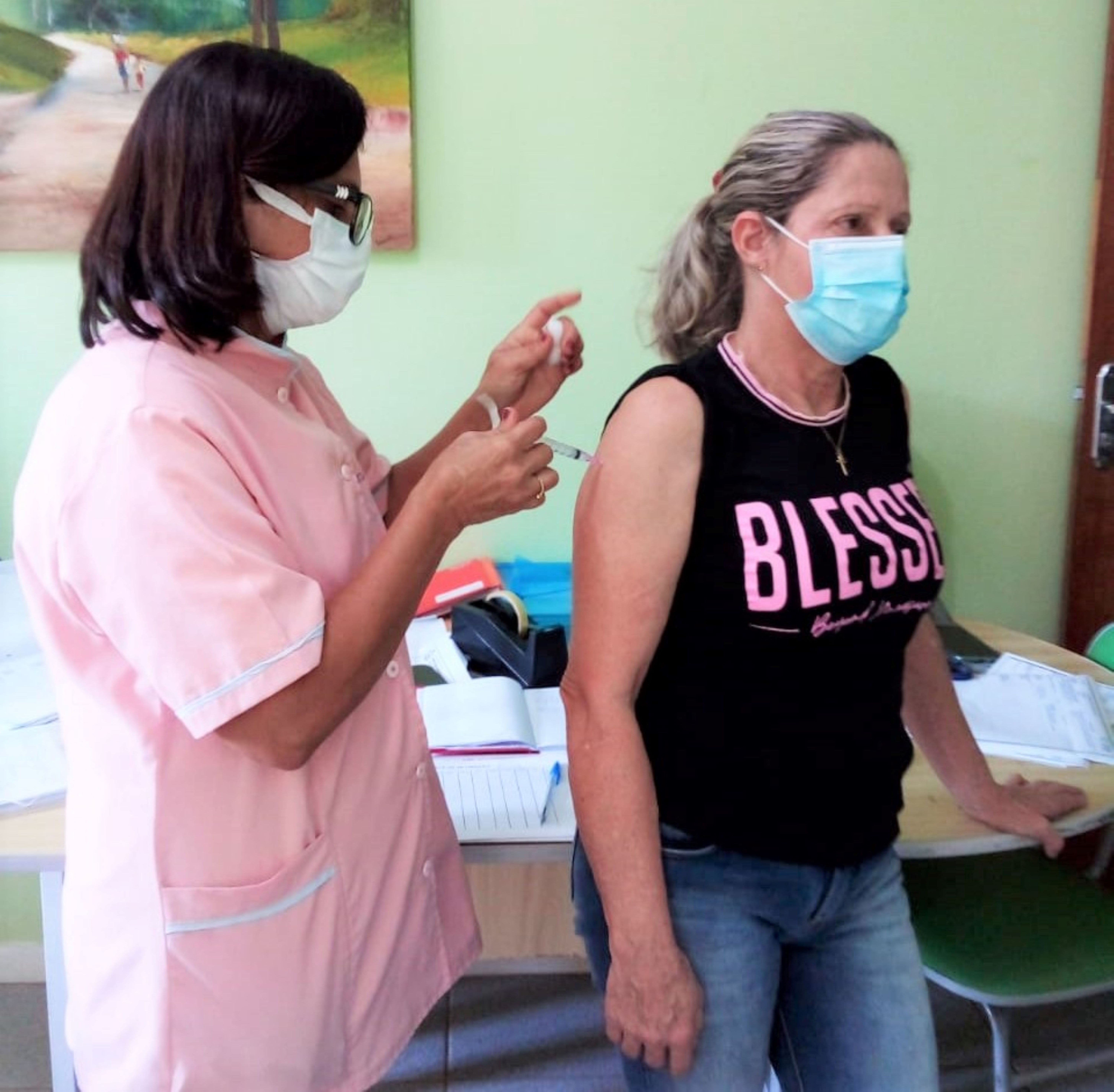 Mais uma profissional da área de educação recebendo a vacina contra a Gripe Influenza