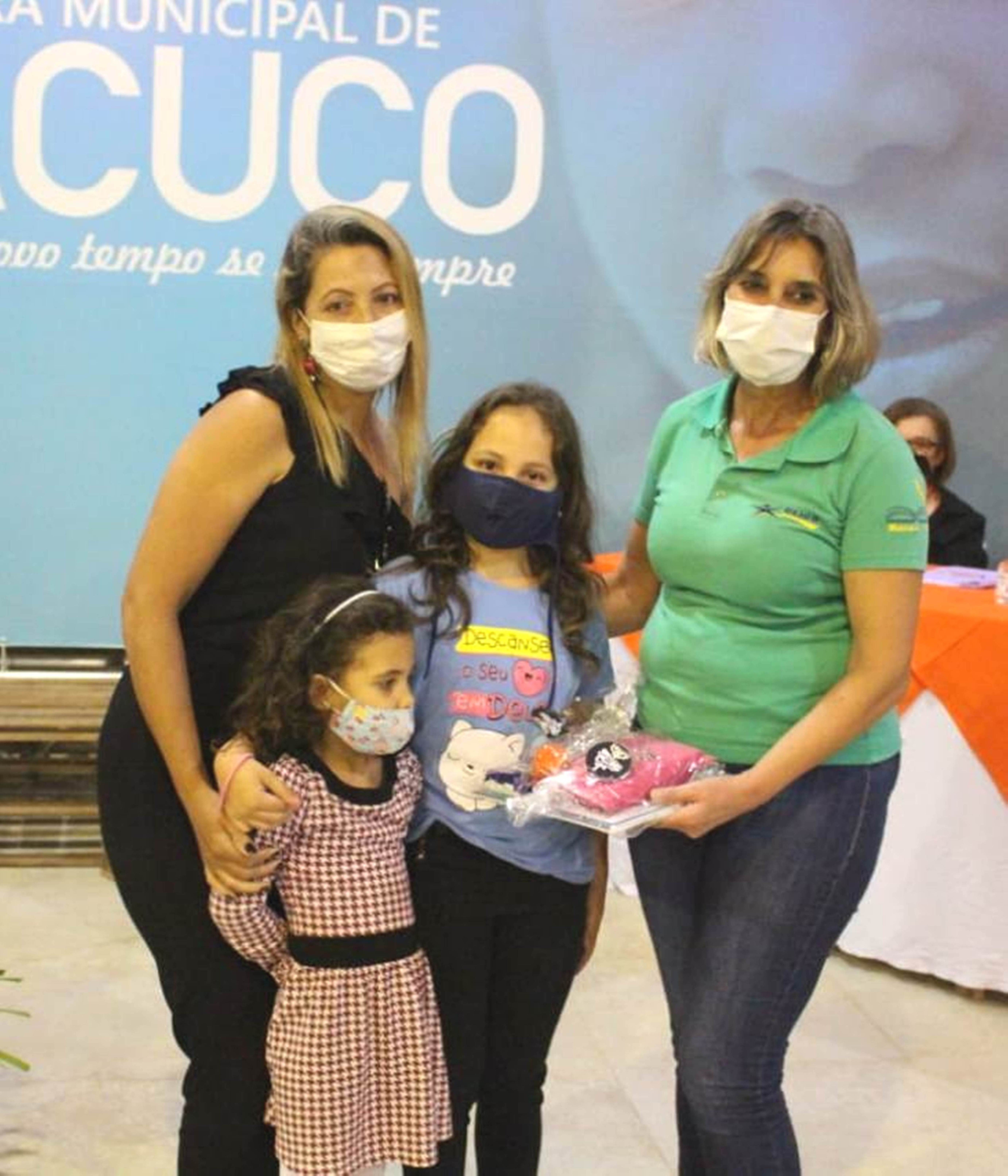 O terceiro lugar do 5º Ano ficou com a estudante Anniely de Lima, que recebeu a premiação ao lado dos integrantes da família