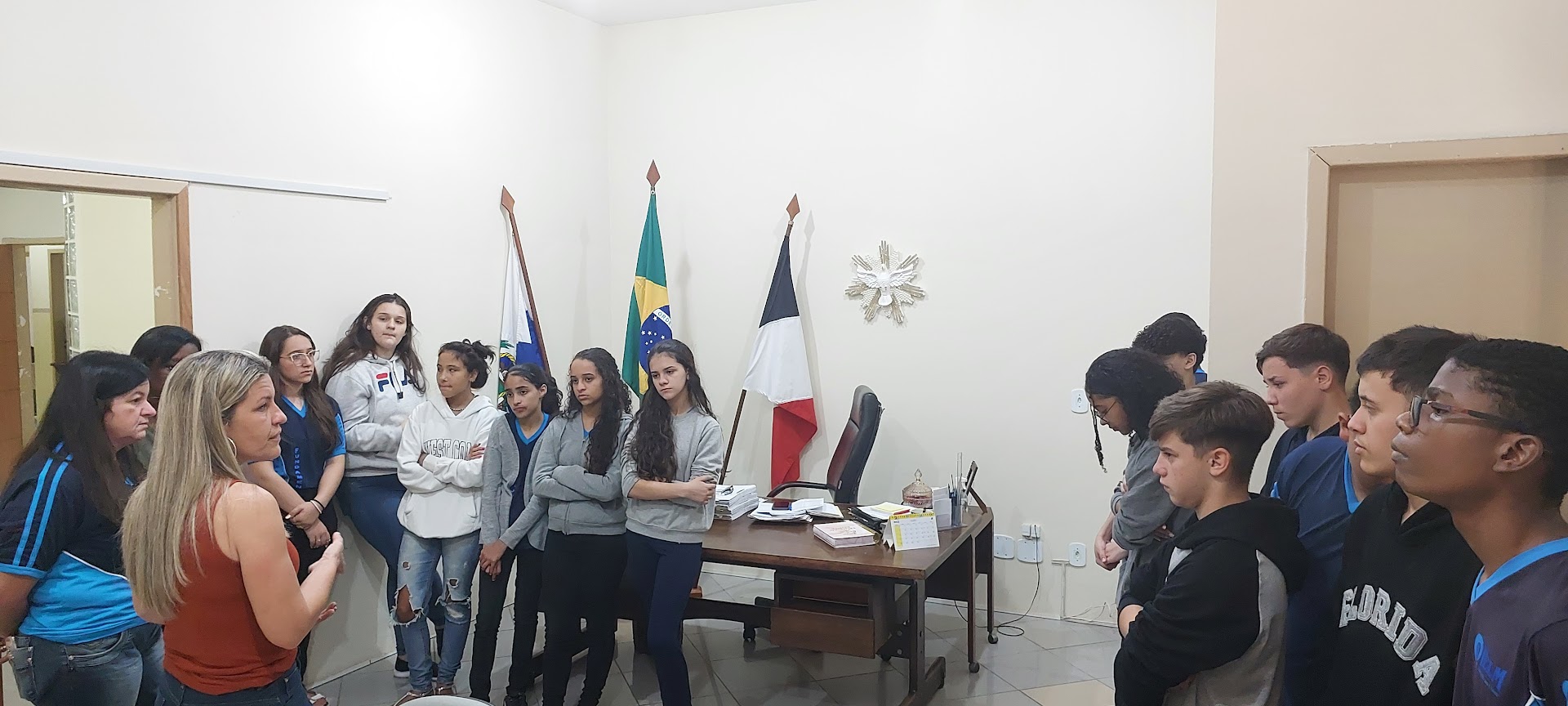 Estudantes deixaram o Gabinete da Prefeita para visitar praticamente todas as salas da Prefeitura de Macuco e conhecer seu cotidiano