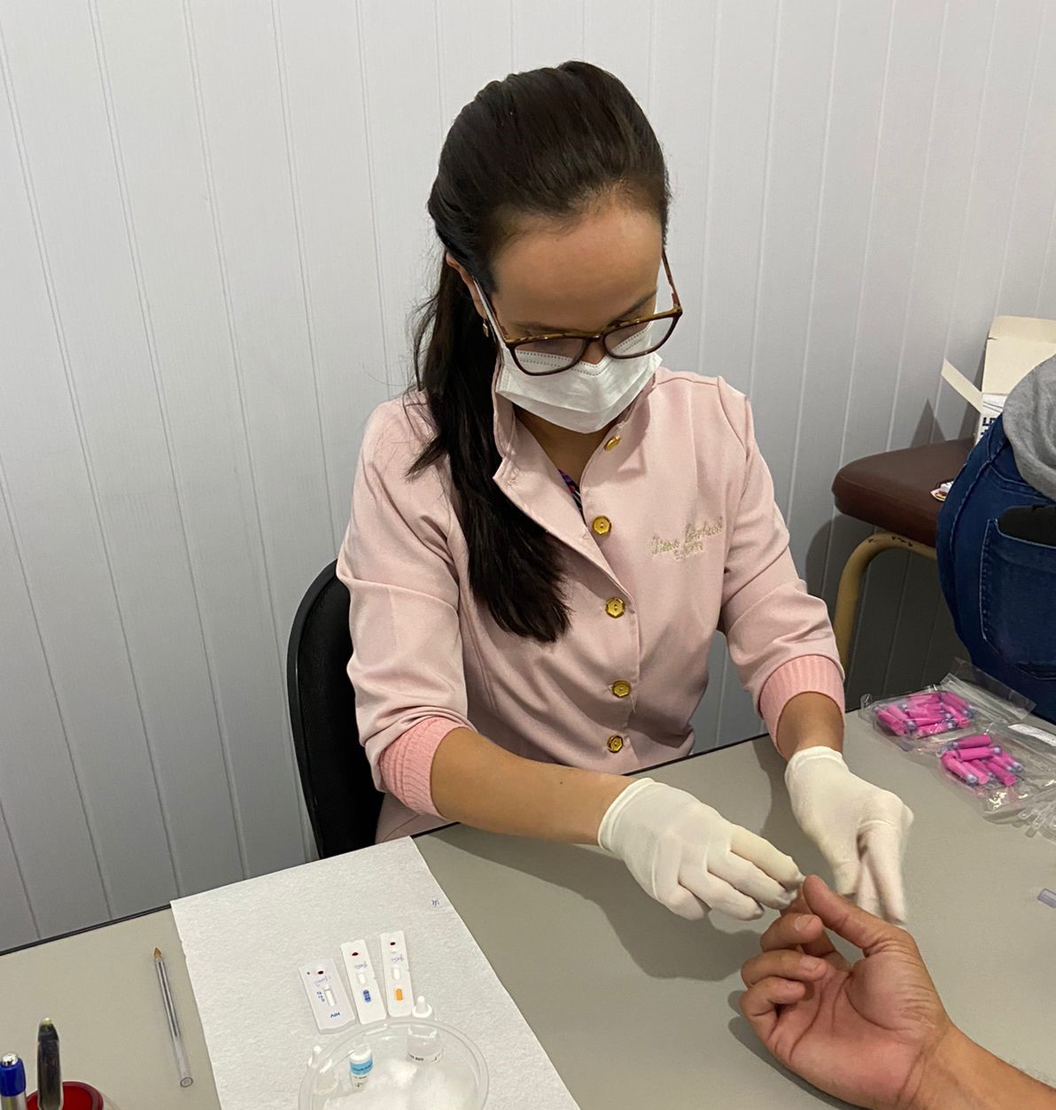 Enfermeira Diana Lutterbach foi a responsável pela realização dos testes rápidos com os funcionários da cooperativa