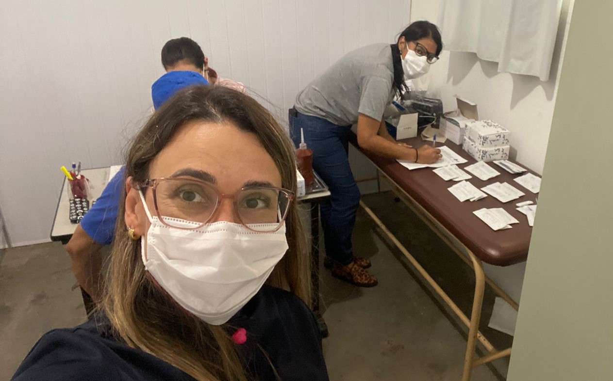 Verônica Golinelli aproveitou a ação para registrar numa selfie o trabalho das profissionais de saúde de Macuco