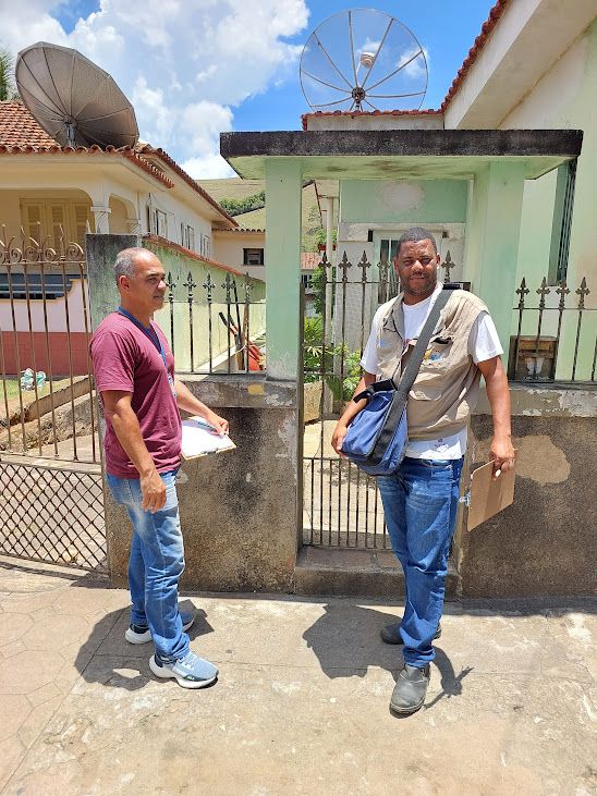 Representante da Secretaria de Saúde do Estado, Marcelo Batista, com o agente macuquense José Carlos durante incursões nos bairros de Macuco