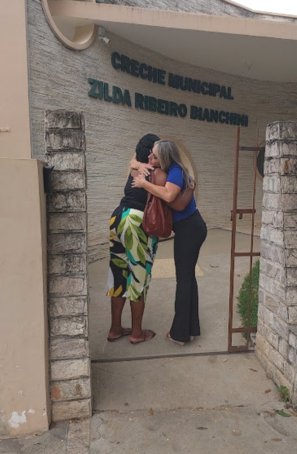 A receptividade e carinho da diretora da Creche Zilda Bianchini, professora Maria Cecília da Conceição, com a secretária Claudia Vogas