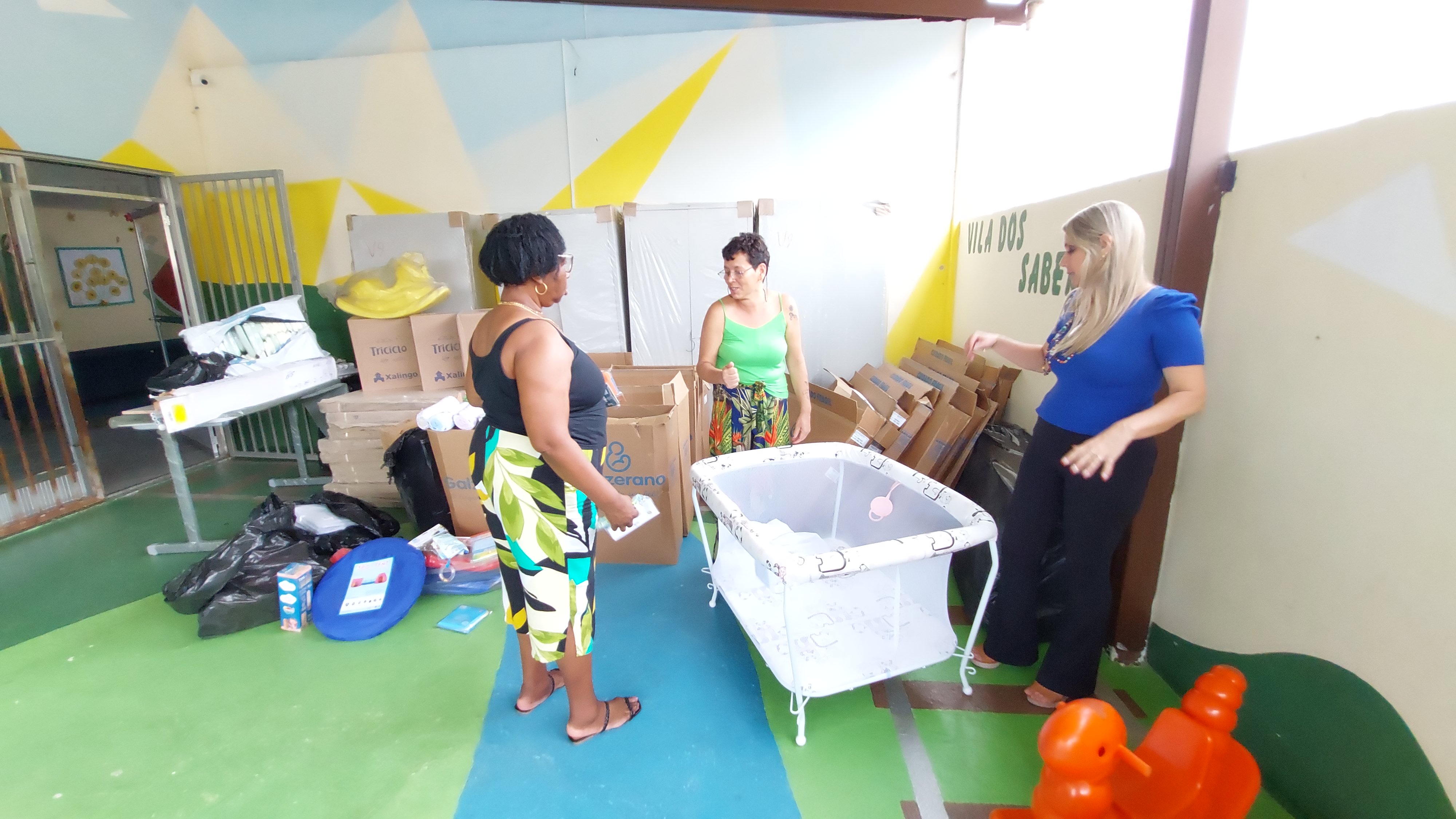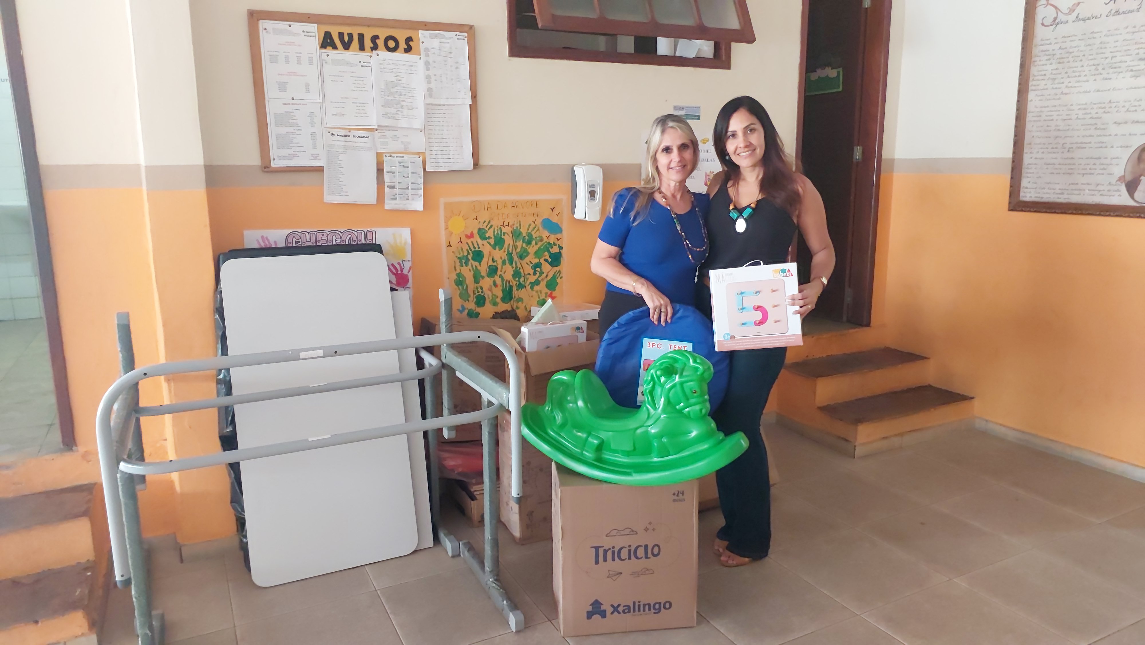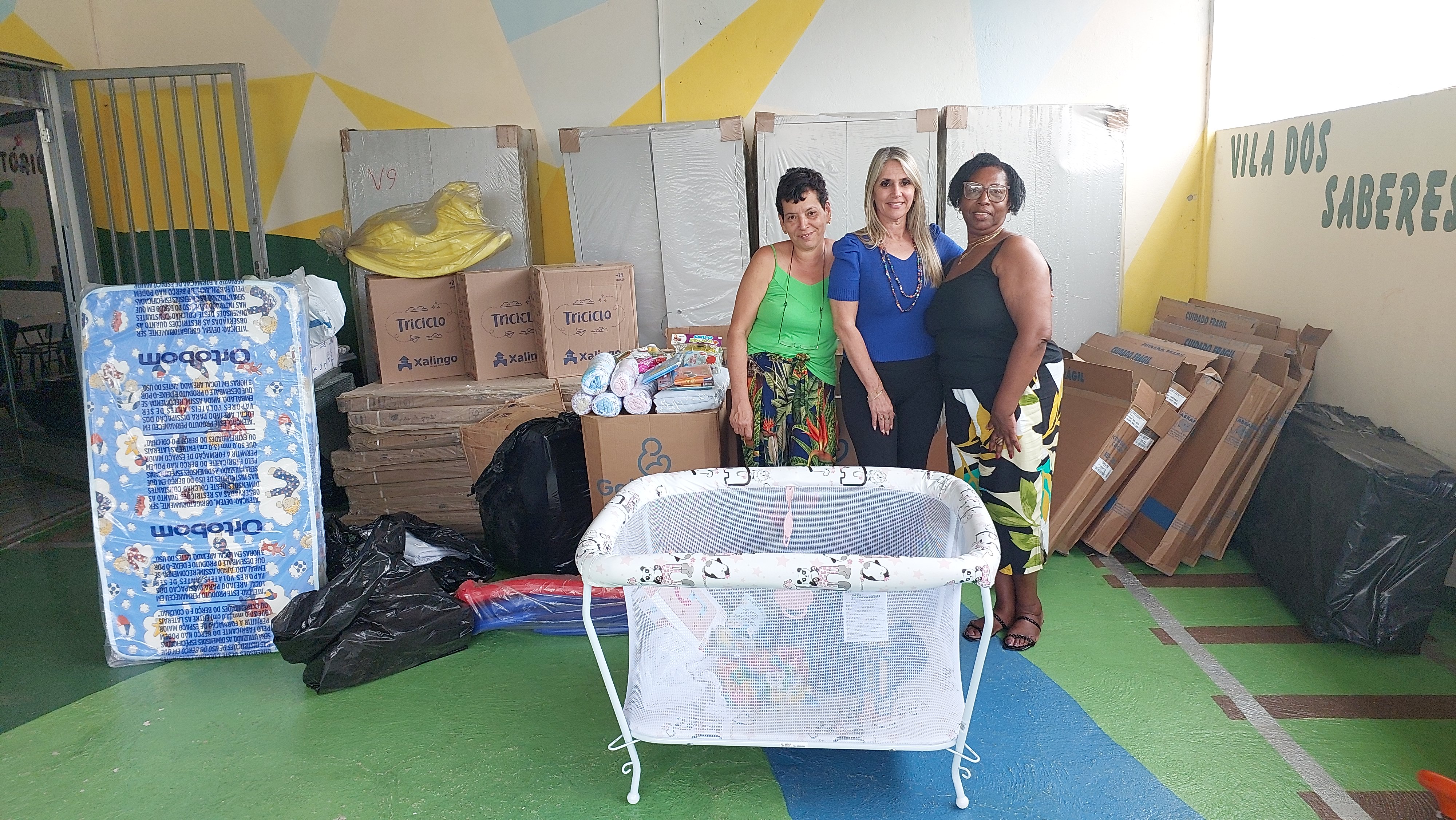 A extensa lista abrange itens básicos e outros equipamentos que proporcionarão um ambiente de aprendizado mais completo e confortável aos alunos. Foram entregues geladeira, freezer horizontal, mesa para professor, ventilador, prancha geométrica, torre de equilíbrio, formas educativas, cortadores de massa de modelar, gangorra tipo cavalinho, toca/túnel, triciclo, escorregador, travesseiros, colchonetes, lençóis para berço, armário de aço, cercadinho, carrinho de bebê, berço, cortinas blackout, varões para cortina, livros para bebês, colchões para berço, colheres, cubos de encaixe e conjuntos escolares de mesa com quatro cadeiras, entre outros itens.
