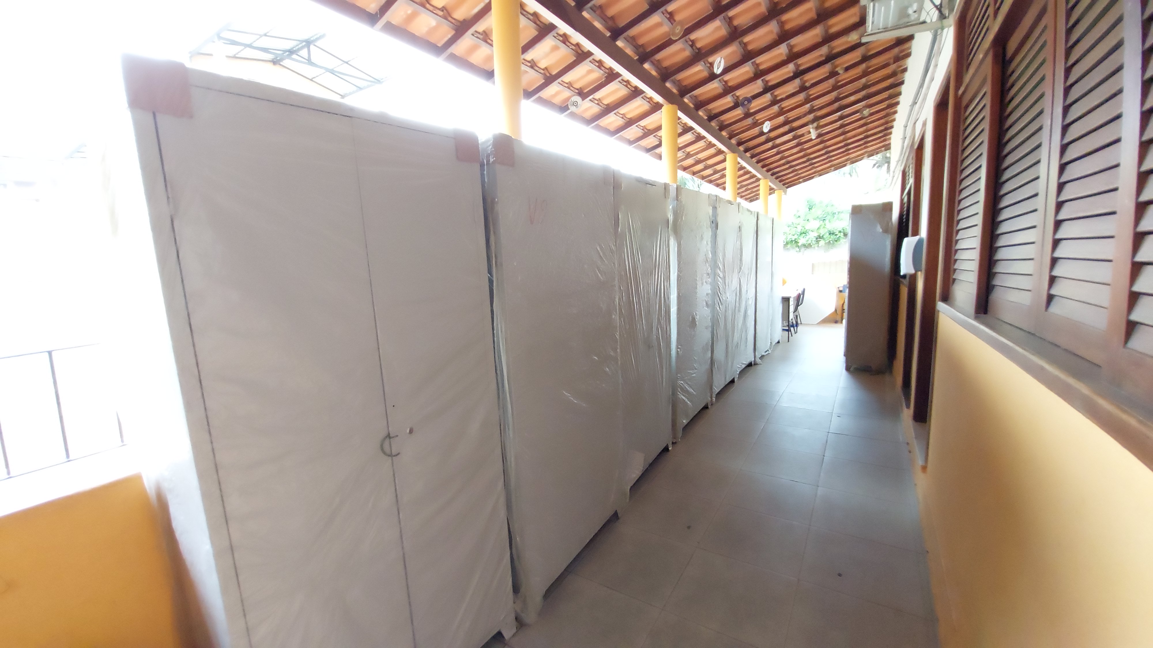 Assim que chegaram os armários ocuparam espaço num dos corredores da escola da Volta do Umbigo aguardando a colocação em seus lugares