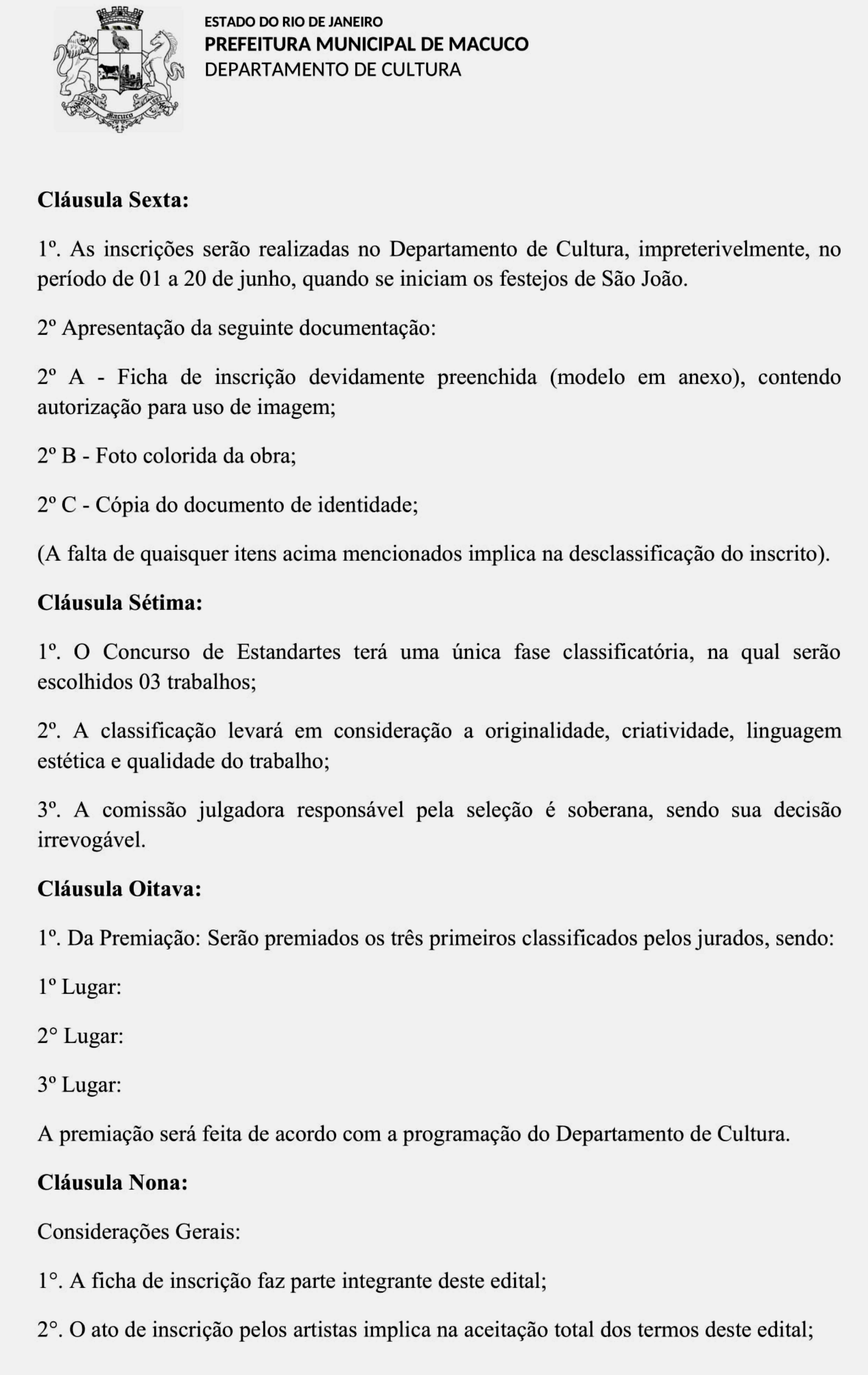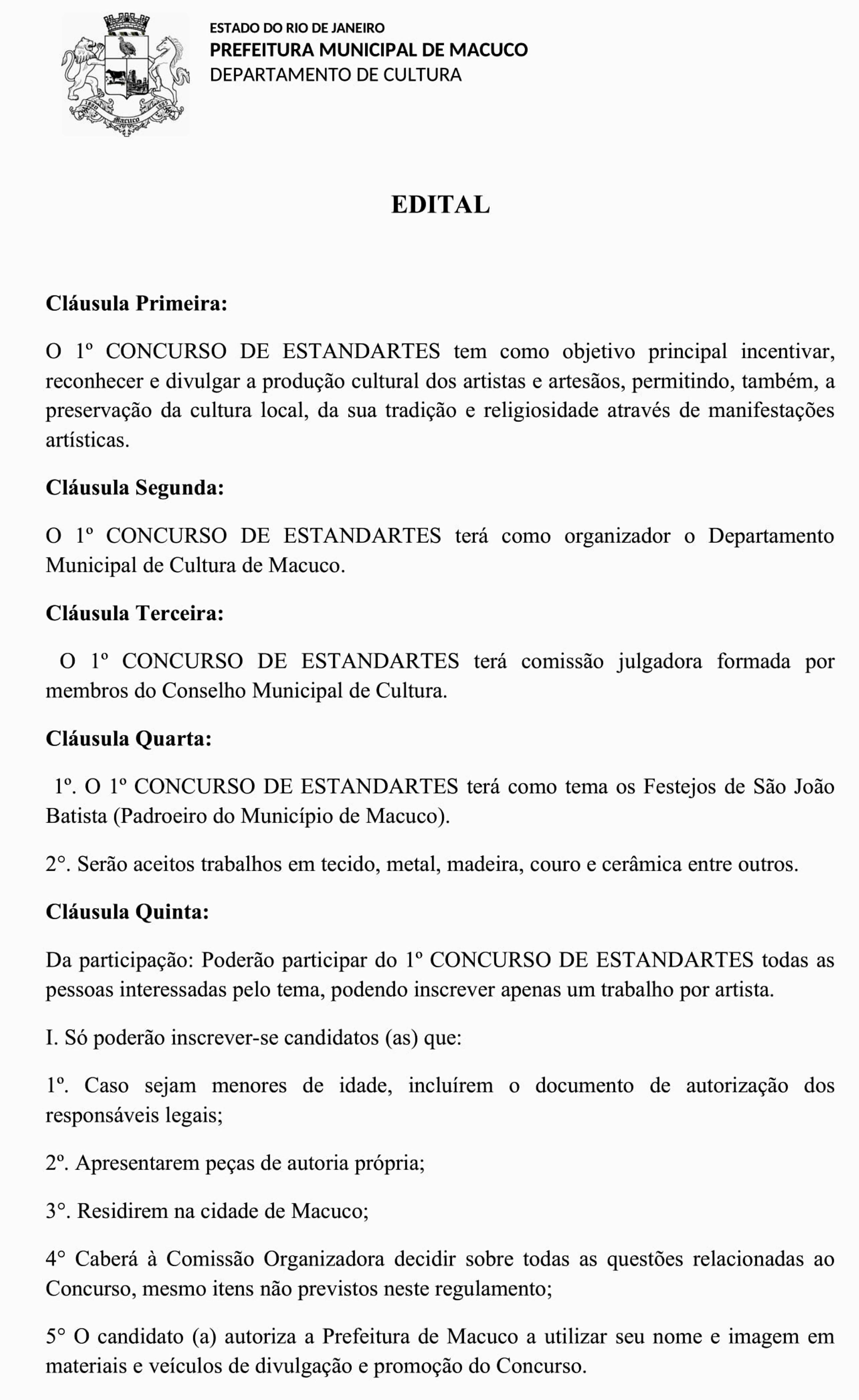 REGULAMENTO DO 1º CONCURSO DE ESTANDARTES