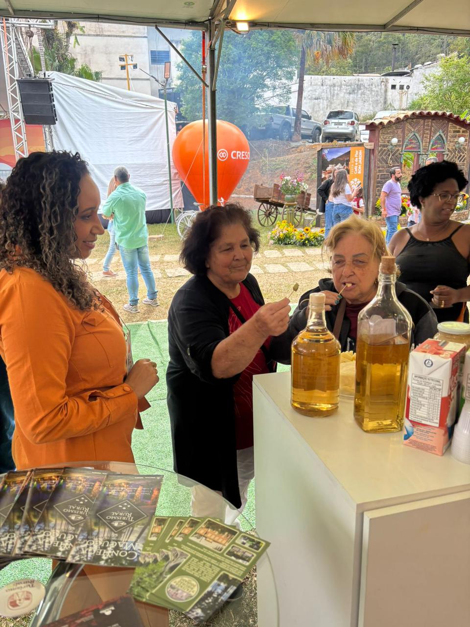 No estande de Macuco, os participantes se sentiram bem à vontade e puderam conhecer e degustar os produtos da Cooperativa de Macuco, um verdadeiro símbolo de qualidade e orgulho local. Também fizeram sucesso os doces artesanais, as cachaças produzidas com zelo e responsabilidade, e os roteiros do Turismo Rural, que valorizam as fazendas centenárias e históricas do município. A arte também teve lugar de destaque com a participação dos artesãos macuquenses, que expuseram peças únicas, e a empolgante apresentação do grupo Tamborim de Ouro, sob regência do talentoso maestro João Poubel, que levantou o público com sambas de enredo inesquecíveis.