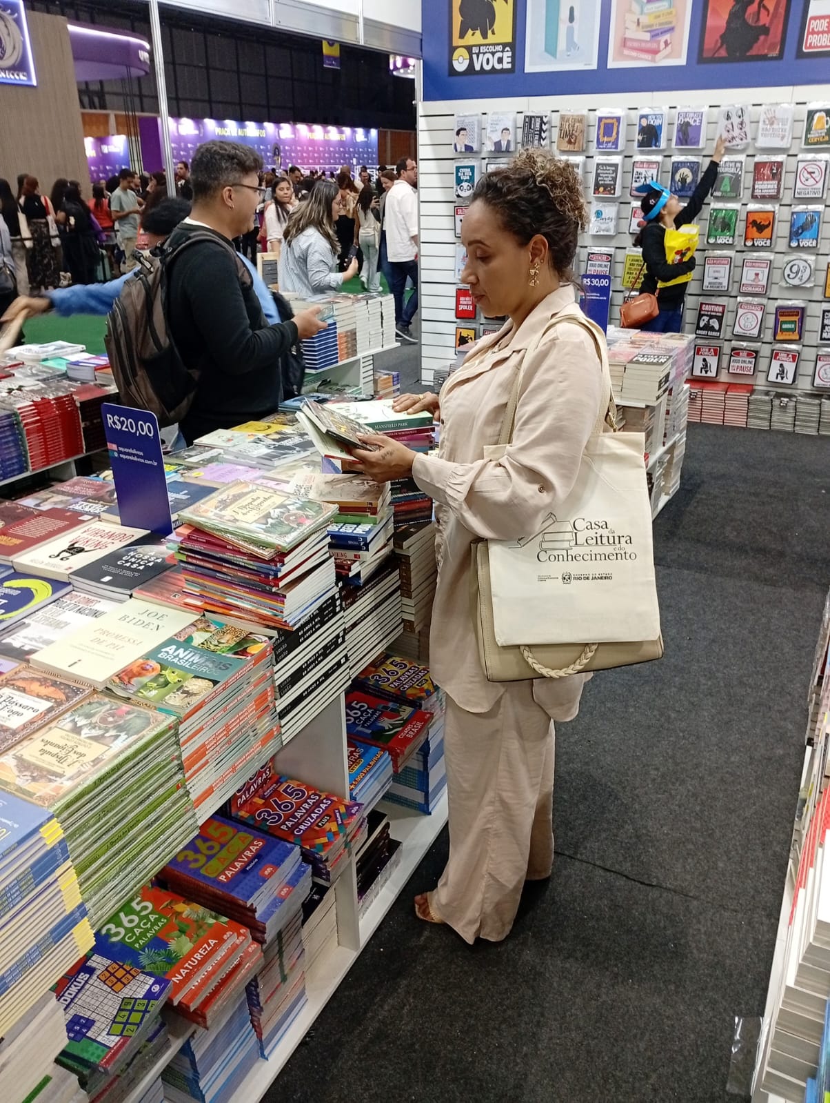 Diretora de Cultura, Micaelle Mattos fez incursões pela Bienal do Rio em busca de livros para integrar o acervo da Biblioteca Municipal de Macuco