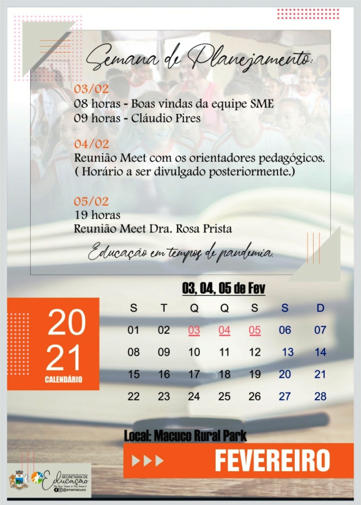 Nesta terça-feira, 02, eles iniciam a programação com a Semana de Planejamento Pedagógico, idealizada pela Secretaria de Educação com o tema ‘Educação em tempos de pandemia’. O objetivo é preparar os profissionais para o Ano Letivo. Orientações do Governo do Estado dão conta de que o início será no modelo remoto e migrará gradualmente para o formato híbrido, ou seja, mesclando as formas presenciais e remotas, tudo seguindo rigoroso controle de segurança em saúde.