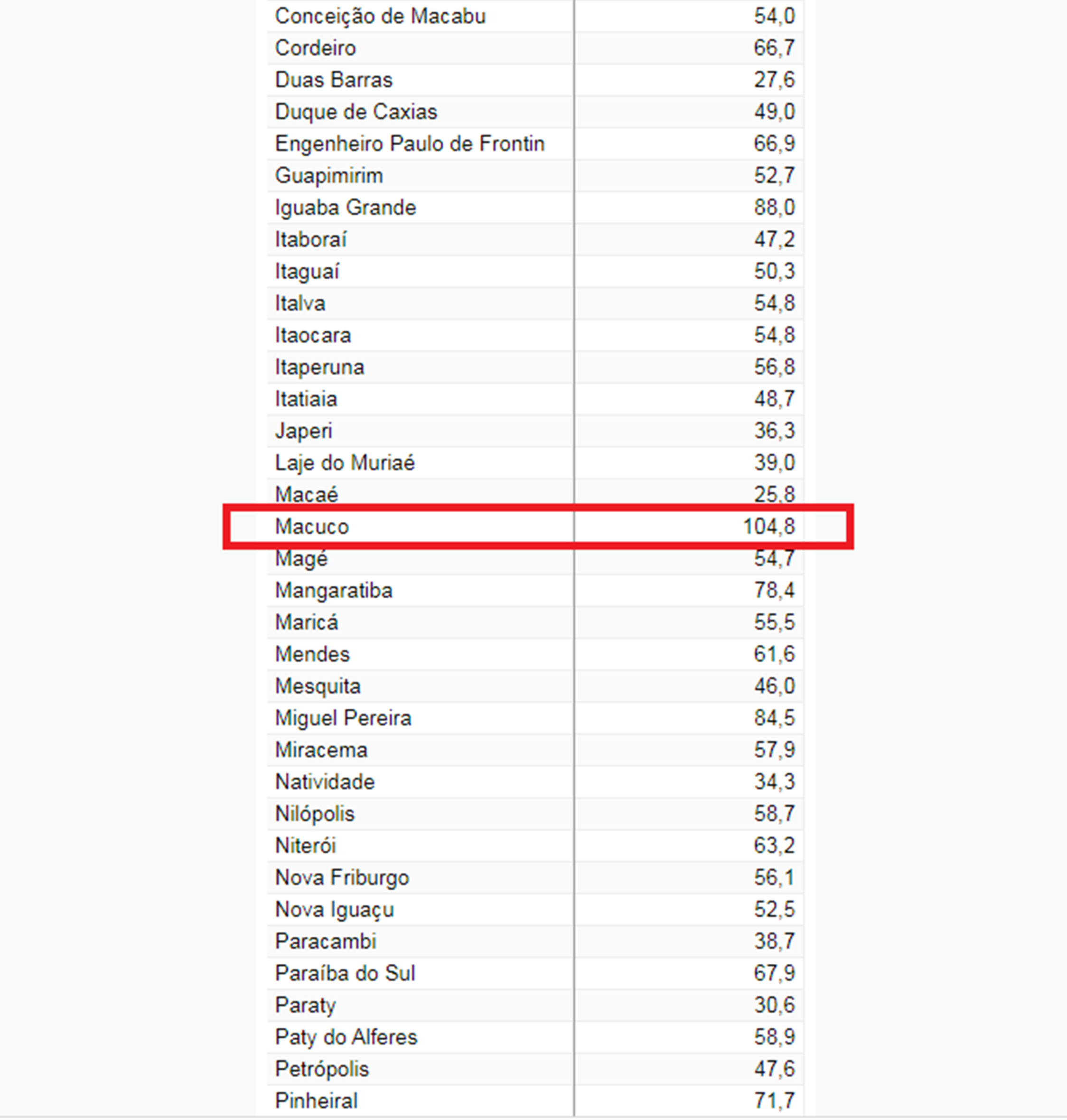 Dados estatísticos recentes da Secretaria de Estado de Saúde confirmam que Macuco lidera as taxas de cobertura da imunização contra a COVID-19 entre todos os municípios fluminenses, inclusive com uma cobertura superior a 100% do público alvo com idade entre 12 e 90 anos para a Primeira Dose (D1). Atualmente, a equipe de imunização está aplicando a Dose de Reforço (DR) em idosos e imunossuprimidos. Hoje, na 1ª Edição do RJTV da Rede InterTV, afiliada à Rede Globo, Macuco figurou entre os municípios com a vacinação mais avançada em termos estaduais.
