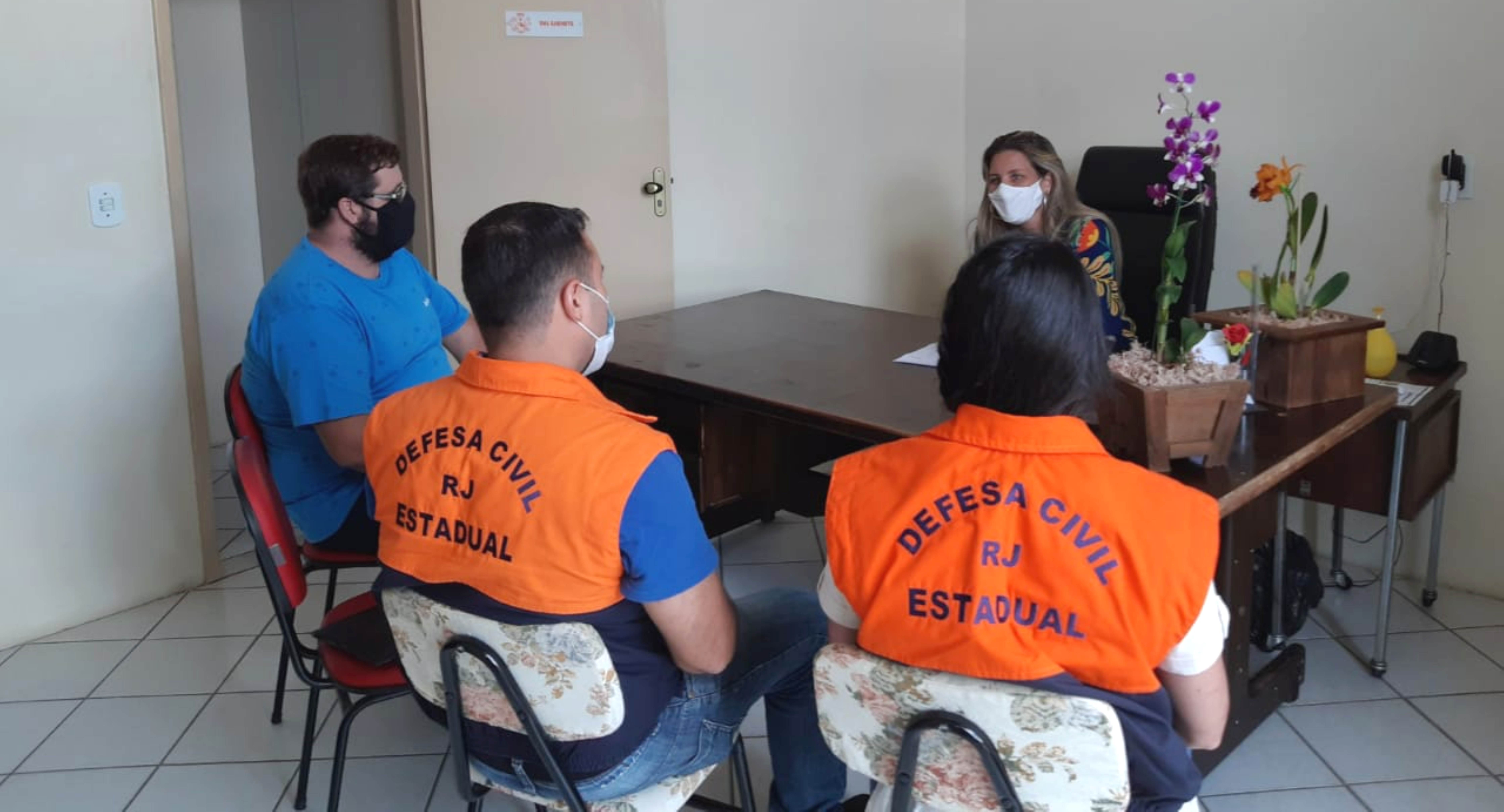 Nesta terça-feira, dia 02, representando o prefeito Bruno Boaretto e acompanhada do secretário de Meio Ambiente e Defesa Civil Firmo Daflon e do supervisor de Processo Luiz Lanes, a vice-prefeita Michelle Bianchini recebeu em Macuco a Tenente Coronel Silvia de Lima, coordenadora de Defesa Civil da Região Serrana do Estado do Rio de Janeiro/REDEC-SERRANA II.