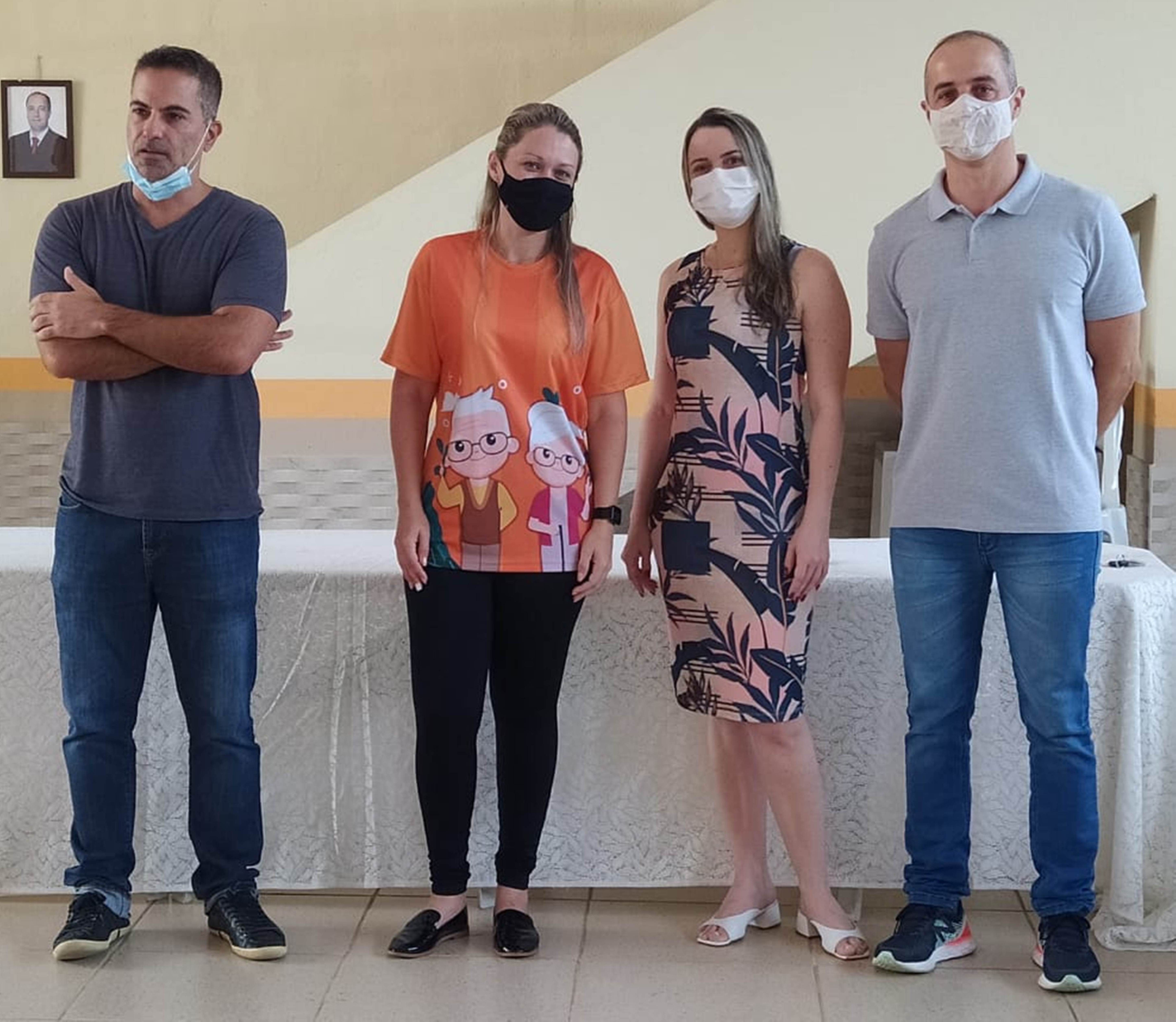 Primeira dama Andreia Boaretto e subsecretária Marlise Quintana entre o secretário Juninho da Saúde e o dentista Flávio Boaretto