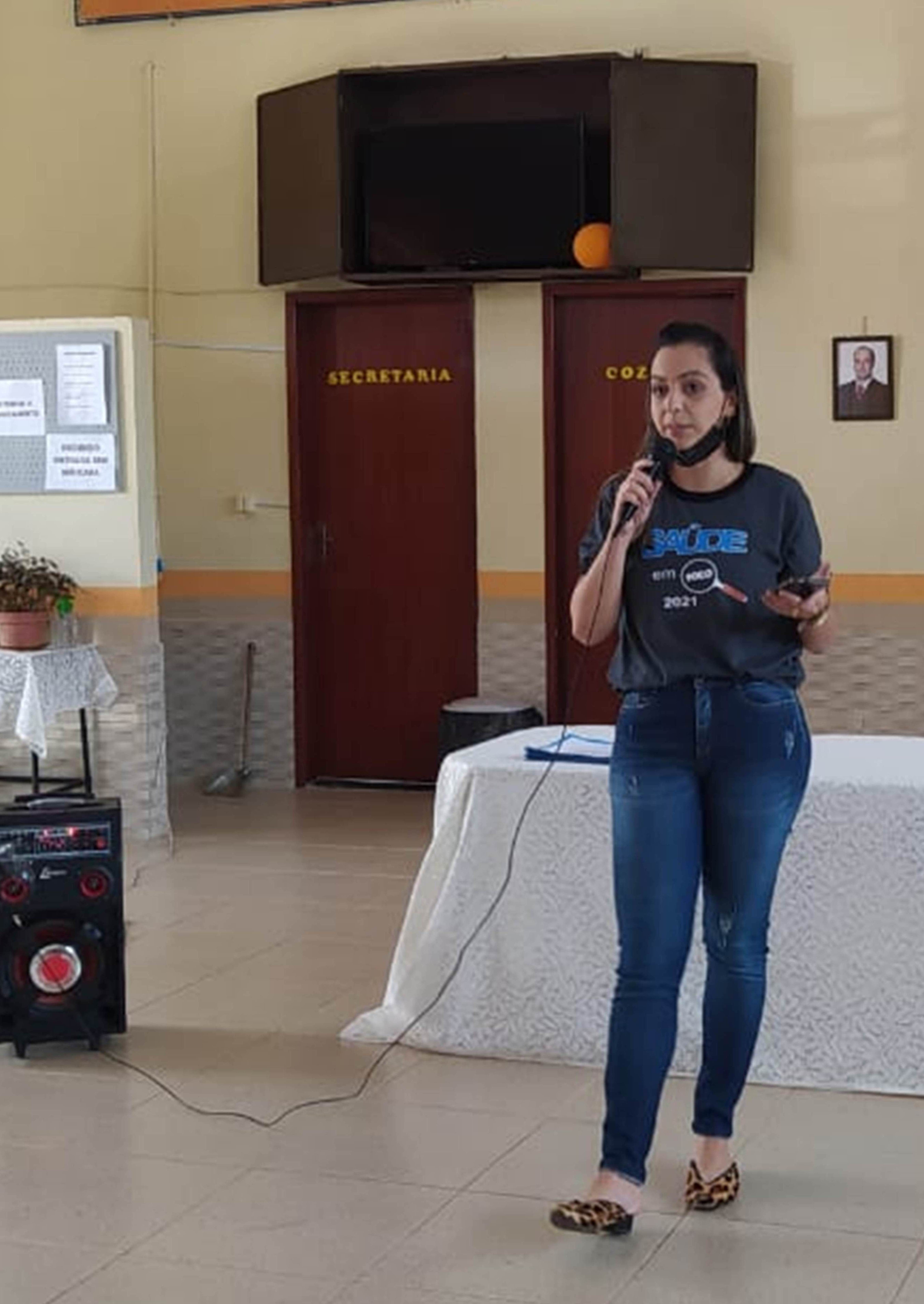 Assistente social Helena Almeida ministrando sua palestra durante o evento idealizado pelo programa ‘Saúde em Foco’