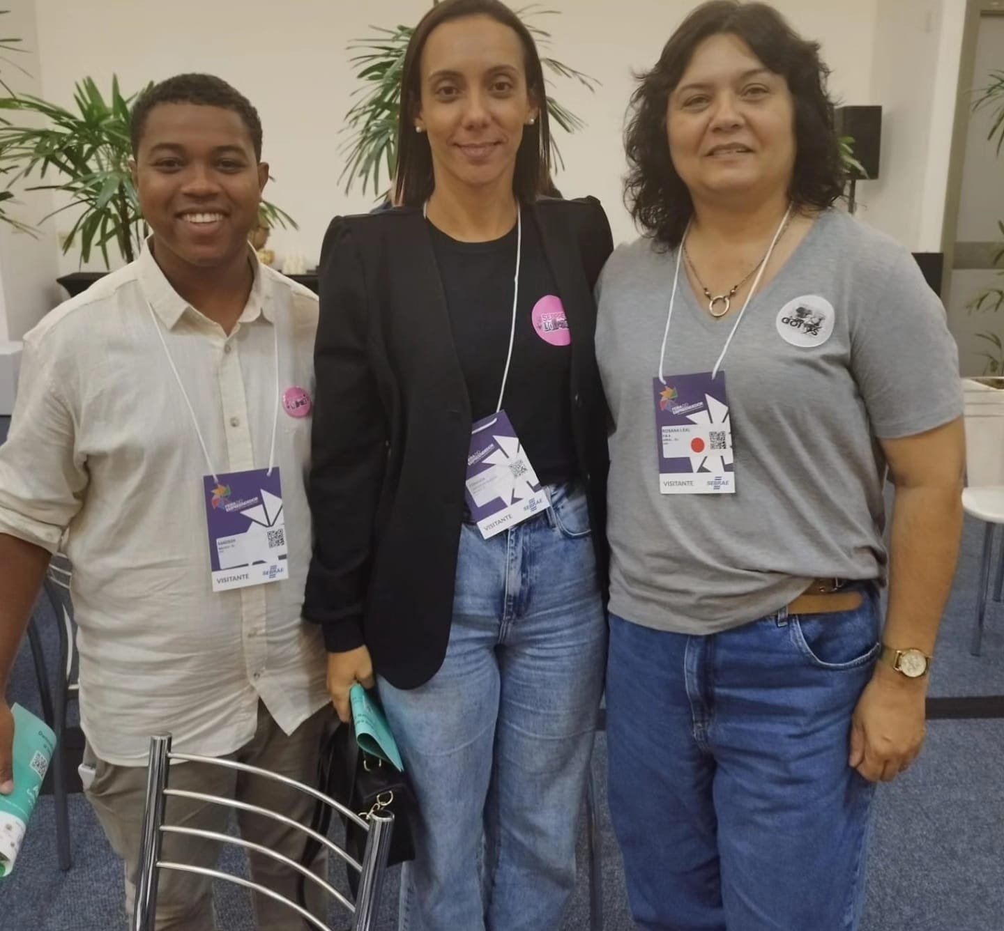 Empreendedor macuquense Sandson Eduardo com as representantes da Sala do Empreendedor de Macuco, Fernanda Diniz, e Areal, Rosana Leal